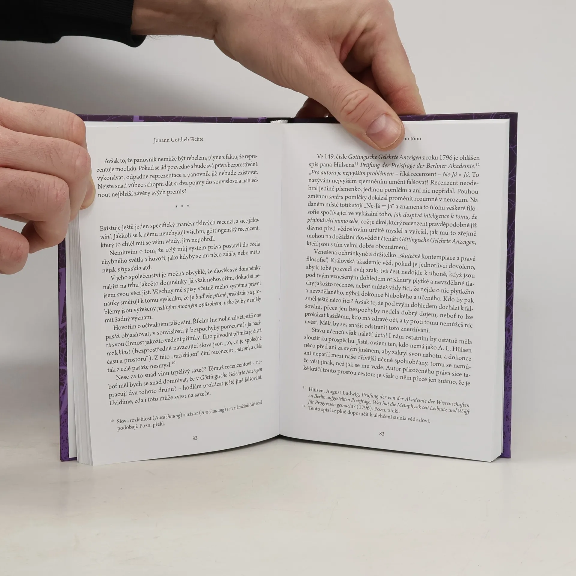Kniha obsahuje překlady recenzí od nejvýznamnějších autorů německé klasické filosofie – Fichta, Schellinga a Hegela. Kromě toho obsahuje také překlad Fichtova spisu Anály filosofického tónu, v němž v rámci reakce na recenzi své knihy Základ přirozeného práva podrobuje ironické kritice dobovou recenzní praxi. Kniha je opatřena úvodní studií Jindřicha Karáska a jmenným rejstříkem.