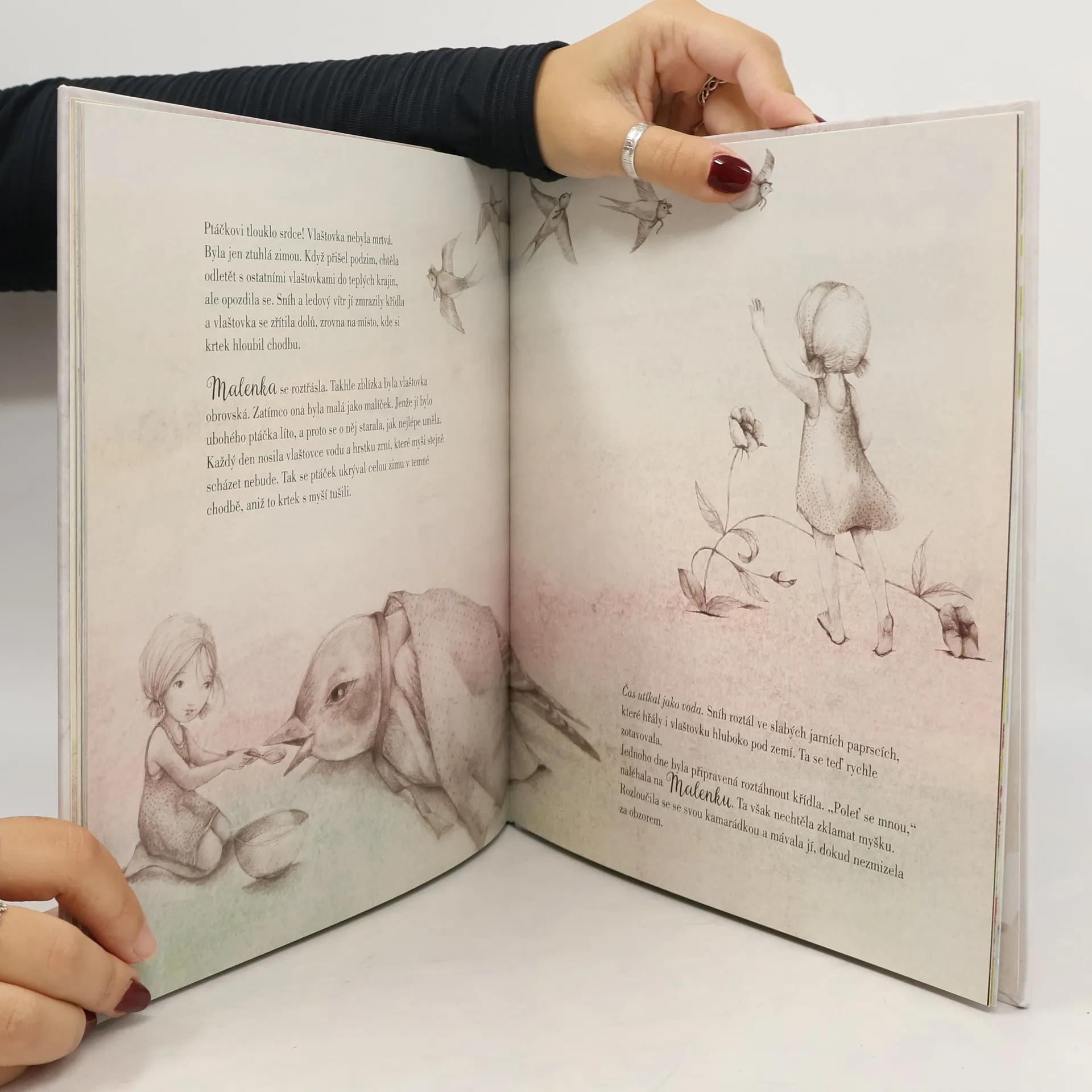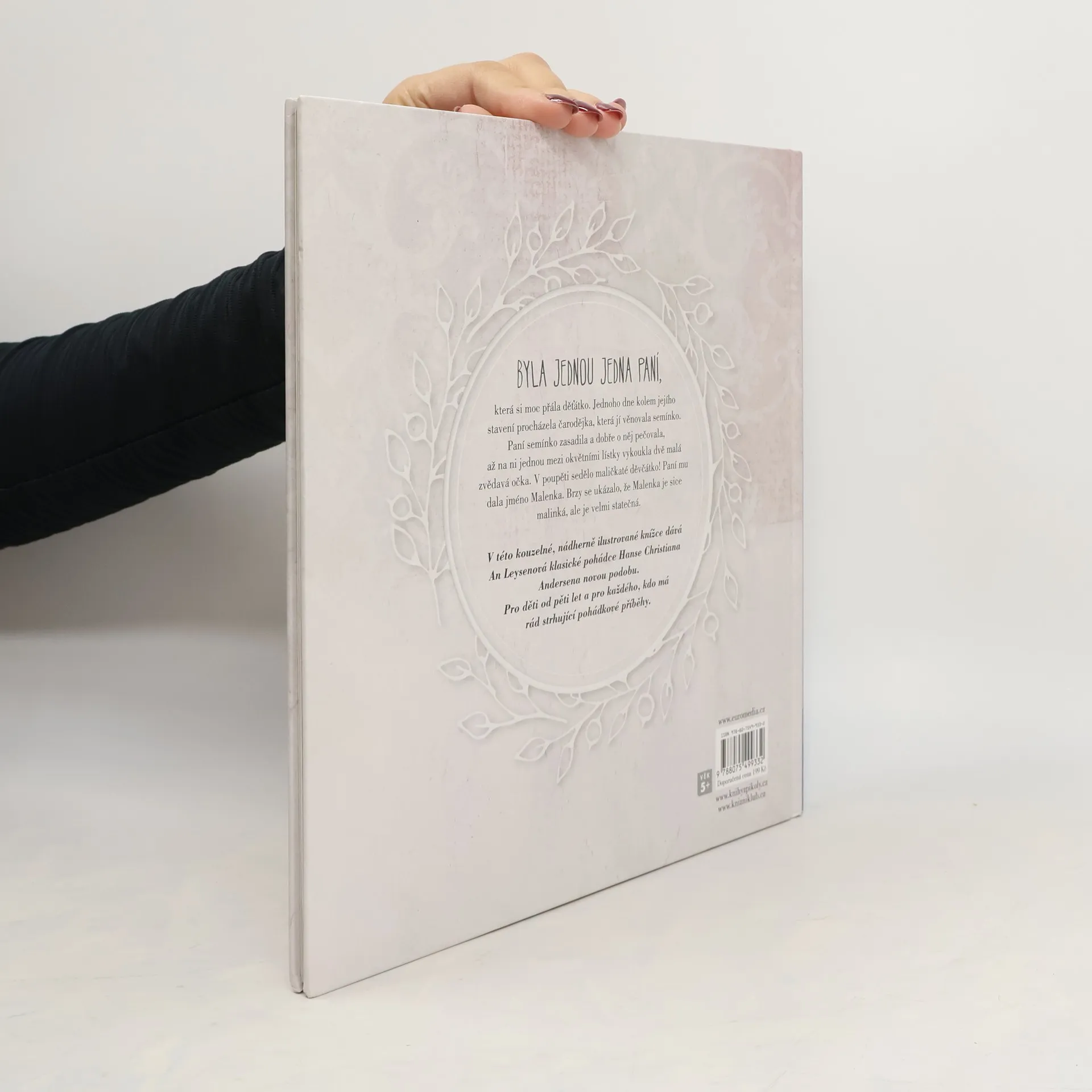 V kouzelné, nádherně ilustrované knížce dává An Leysonová klasické pohádce Hanse Christiana Andersena novou podobu. Byla jednou jedna žena, která si moc přála děťátko. Jednoho dne kolem jejího stavení procházela čarodějka, která jí věnovala semínko. Žena semínko zasadila a dobře o něj pečovala, a záhy na ni mezi okvětními lístky vykoukla dvě malá zvědavá očka. V poupěti sedělo maličkaté děvčátko! Žena mu dala jméno Malenka. Brzy se ukázalo, že Malenka je sice malinká, ale je velmi statečná. Kniha je určena pro děti od pěti let a pro každého, kdo má rád strhující pohádkové příběhy.