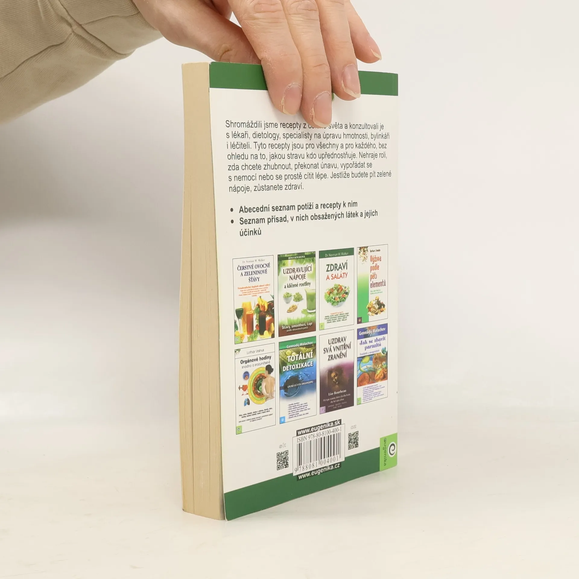 Unikátní receptář zdravých a dnes velmi populárních nápojů přináší abecední seznam potíží a recepty, které vám při nich pomohou. Najdete zde i přehledné seznamy přísad, v nich obsažených látek a jejich účinků. Autoři shromáždili recepty z celého světa a konzultovali je s lékaři, dietology, specialisty na úpravu hmotnosti, bylinkáři i léčiteli. Tyto recepty jsou pro všechny a pro každého, bez ohledu na to, jakou stravu kdo upřednostňuje. Nehraje roli, zda chcete zhubnout, překonat únavu, vypořádat se s nemocí nebo se prostě cítit lépe. Jestliže budete pít zelené nápoje, zůstanete zdraví.