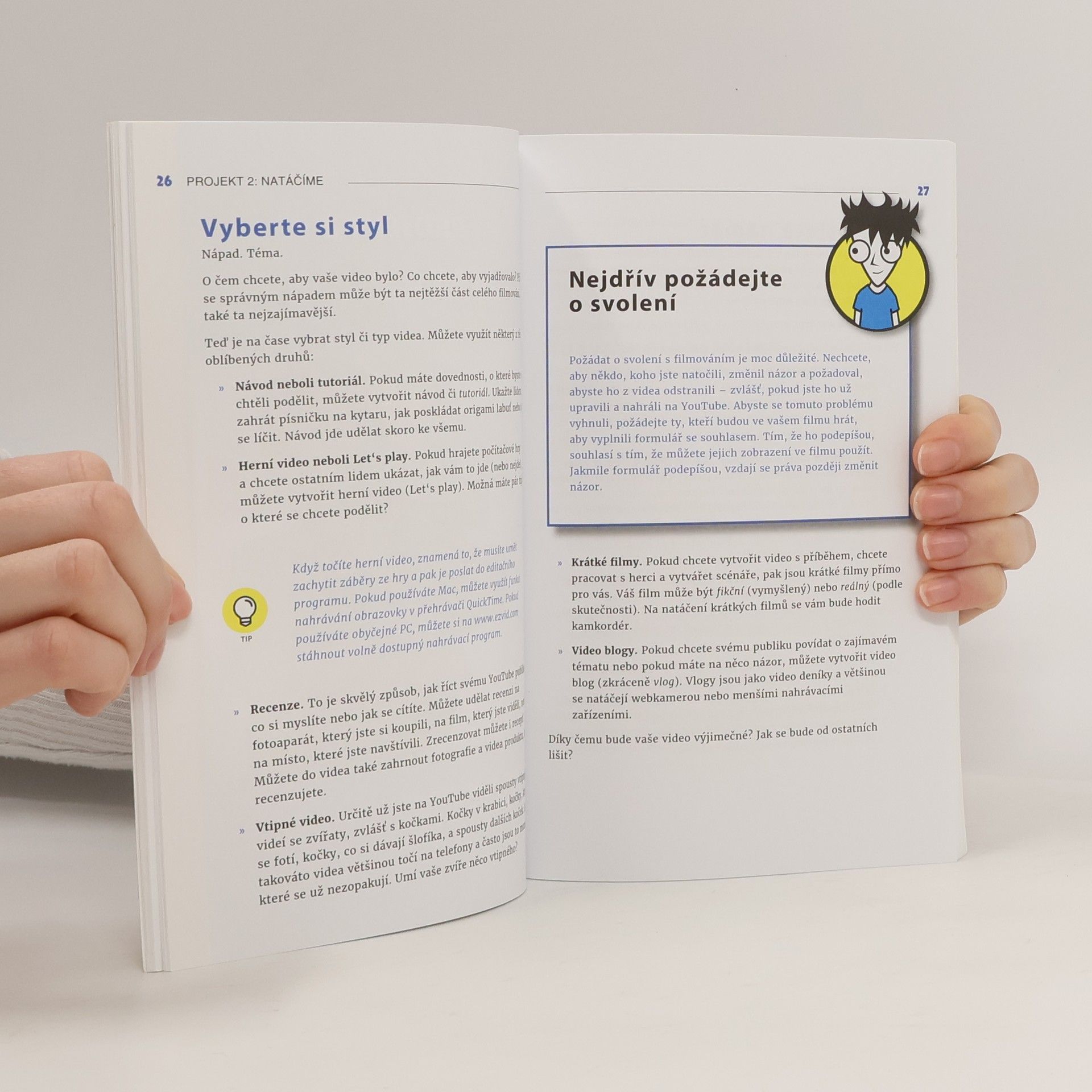 Milujete YouTube? Máte své oblíbené youtubery, které sledujete pravidelně? Říkáte si, že to co oni, byste zvládli taky? Tak to zkuste! Uvidíte, že i za nejjednodušším videem je velká práce. Díky této knížce konečně přesvědčíte rodiče, že sledování a natáčení videí není ztráta času, nýbrž činnost, při níž se můžete mnohému naučit a hlavně zažít spoustu zábavy tvůrčím způsobem. Ukáže vám, jak tvořit videa, která můžete sdílet. Projde s vámi procesem výroby filmu od začátku do konce. Co je důležité připravit si před natáčením? Na co nezapomenout, když držíte v ruce kameru či mikrofon? Jaké vlastnosti by měl mít režisér? Realizujte své nápady a vyberte si na to správné nástroje. Naučte se, jak video rámovat a nasvítit i jak dosáhnout dokonalého zvuku. Vyhrajte si s úpravami v základních editačních programech pro PC a Mac. Střih, efekty, hudba, titulky, přechody, komentáře… A konečně – distribuujte své dílo, představte ho veřejnosti! Založte si YouTube kanál, nastavte správně soukromí a získejte co nejvíc zhlédnutí. Tato kniha vám bude po celou dobu prospěšným a srozumitelným rádcem.