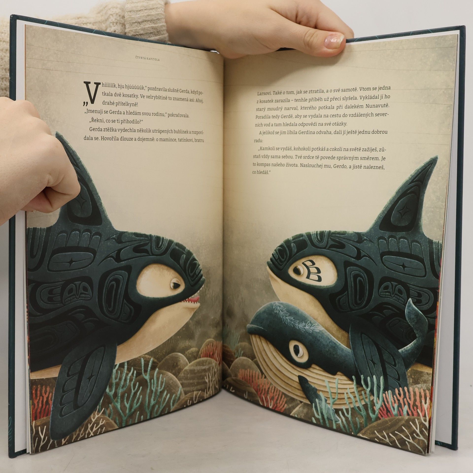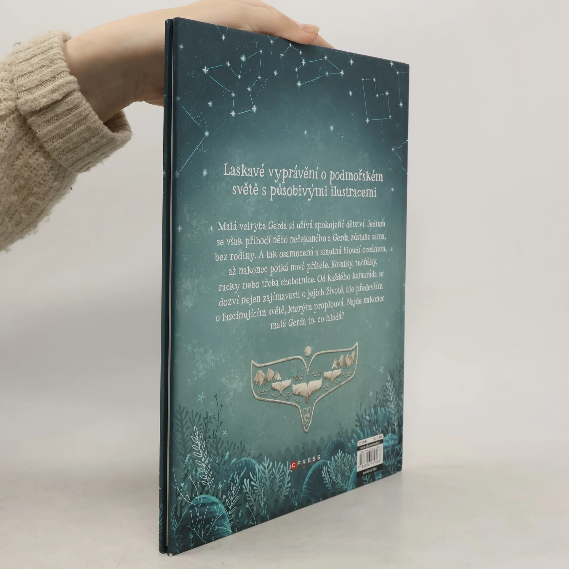 Laskavé vyprávění o podmořském světě s působivými ilustracemi. Malá velryba Gerda si užívá spokojené dětství. Jednou se však přihodí něco nečekaného a Gerda zůstane sama, bez rodiny. A tak osamocená a smutná bloudí oceánem, až nakonec potká nové přátele. Kosatky, tučňáky, racky nebo třeba chobotnice. Od každého kamaráda se dozví nejen zajímavosti o jejich životě, ale především o fascinujícím světě, kterým proplouvá. Najde nakonec malá Gerda to, co hledá?