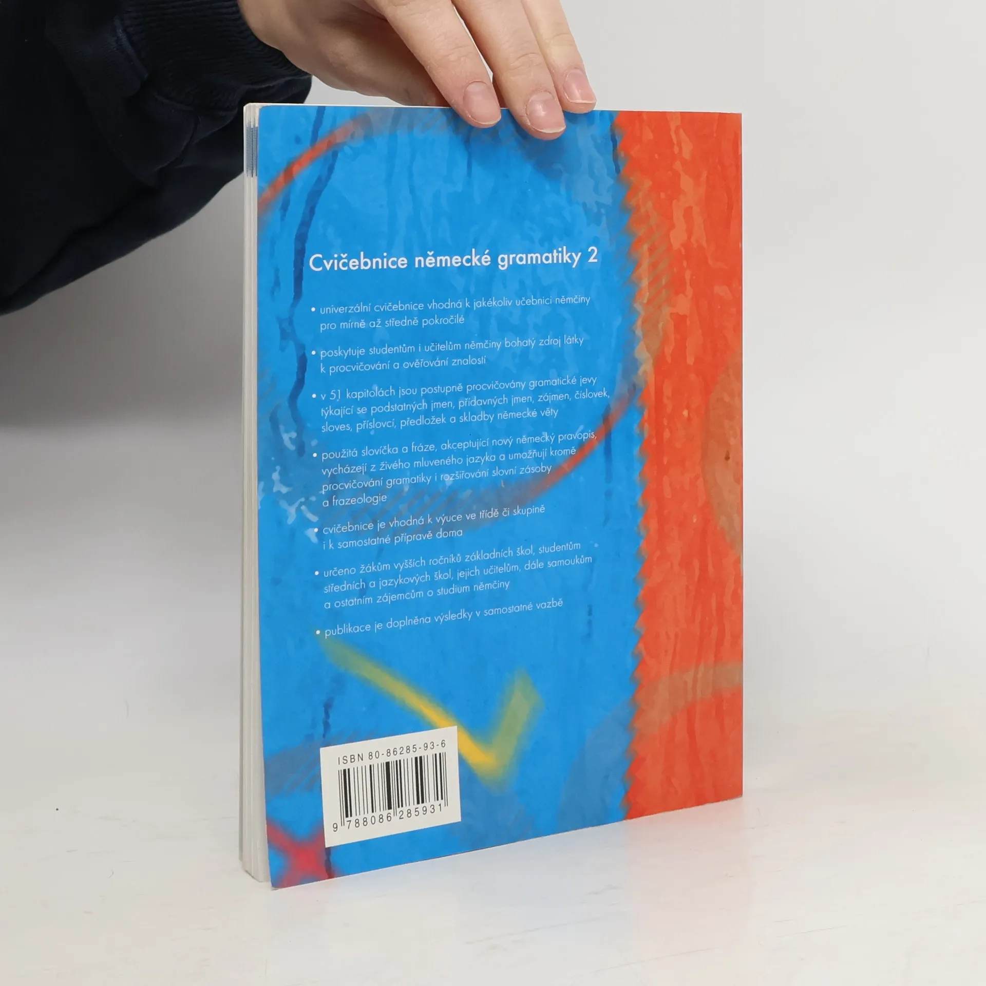 Univerzální cvičebnice vhodná k jakékoliv učebnici němčiny pro mírně až středně pokročilé. Poskytuje studentům i učitelům němčiny bohatý zdroj látky k procvičování a ověřování znalostí. V 51 kapitolách jsou postupně procvičovány gramatické jevy týkající se podstatných jmen, přídavných jmen, zájmen, číslovek, sloves, příslovcí, předložek a skladby německé věty. Použitá slovíčka a fráze, akceptující nový německý pravopis, vycházejí z živého mluveného jazyka a umožňují kromě procvičování gramatiky i rozšiřování slovní zásoby a frazeologie. Cvičebnice je vhodná k výuce ve třídě či skupině i k samostatné přípravě doma např. k maturitě, k státní či mezinárodní zkoušce apod. Určeno žákům vyšších ročníků základních škol, studentům středních a jazykových škol, jejich učitelům, dále samoukům a ostatním zájemcům o studium němčiny. Publikace je doplněna výsledky v samostatné vazbě.