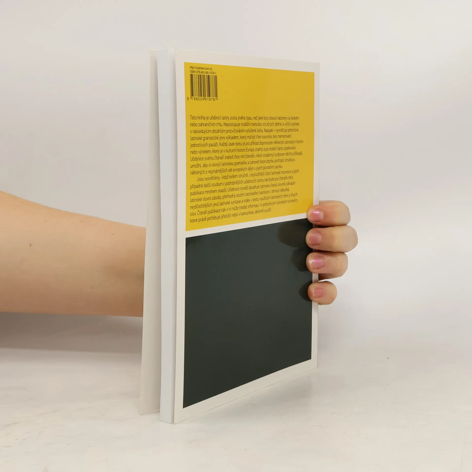 Tato kniha je učebnicí latiny zcela jiného typu, než jaké byly dosud nabízeny na českém nebo zahraničním trhu. Nepostupuje tradiční metodou stručných definic a výčtů výjimek s následujícím obsáhlým procvičováním vyložené látky. Naopak - vysvětluje jednotlivé latinské gramatické jevy výkladem, který má být čten souvisle, bez memorování jednotlivých pasáží. Každý úsek textu je pro příklad doprovozen některým latinským rčením nebo výrokem, který je v kulturní historii Evropy známý a po staletí často opakovaný. Učebnice svému čtenáři (neboť chce mít čtenáře, nikoli studenty) rozborem těchto příkladů umožní, aby si osvojil latinskou gramatiku a zároveň beze zbytku pochopil strukturu některých z nejznámějších vět evropských dějin v jejich původním jazyku. Jsou vysvětleny, i když ovšem stručně, i nejsložitější části latinské mluvnice a jejich případné další studium v podrobnějších učebnicích latiny tak bude pro čtenáře této publikace mnohem snazší. Učebnice rovněž obsahuje latinsko-český slovník základní latinské slovní zásoby, přehledný souhrn latinského tvarosloví, shrnutí několika nejdůležitějších jevů latinské syntaxe a index v textu využitých latinských rčení a živých slov. Čtenář publikace tak v ní může hledat informaci i k jednotlivým latinským výrokům, které právě potřebuje přeložit nebo v komunikaci aktivně využít.