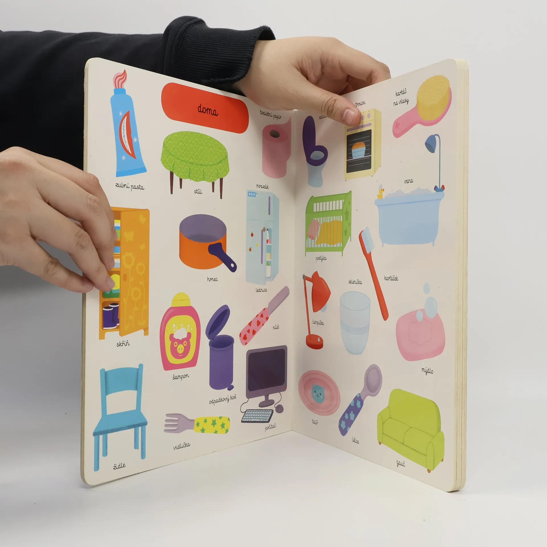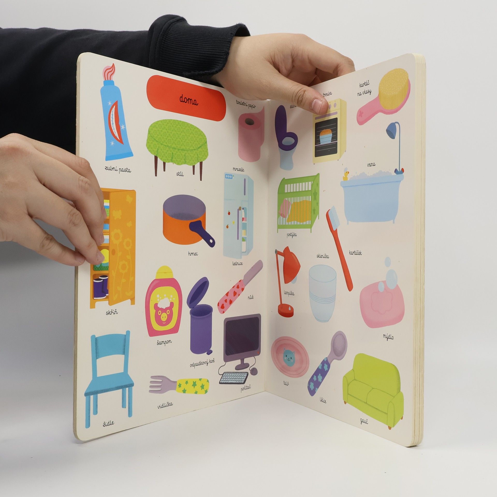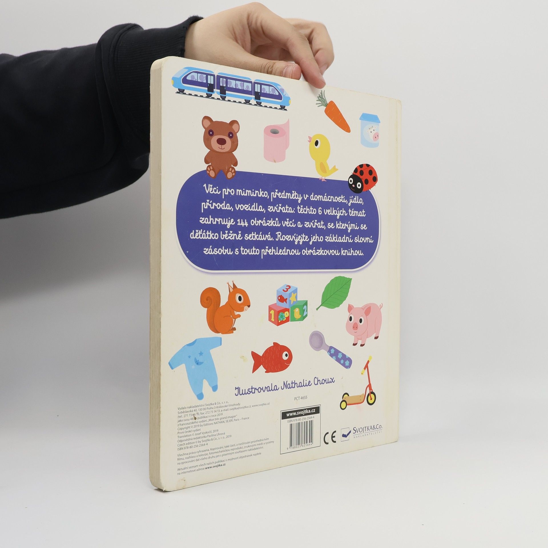 Se kterými předměty se potkáváš nejčastěji? Jsou to tvé hračky, tvé oblečení nebo tvé oblíbené jídlo? A umíš je všechny správně pojmenovat? V této knížce si děti pomocí jednoduchých názorných ilustrací osvojí základní slovní zásobu. Naučí se rozeznávat jednotlivé kusy oblečení, zvířata i dopravní prostředky, které mohou vídat na ulicích. Je určena opravdu těm nejmenším "čtenářům", kteří se teprve učí poznávat svět pomocí pojmenovávání běžných jevů v něm. S pomocí rodičů se může stát první nejmilejší knihou, díky níž si děti do budoucna vybudují kladný vztah ke čtení.