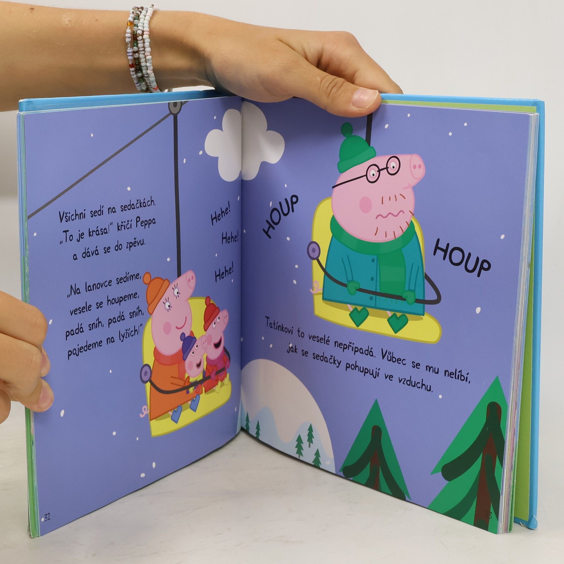 Peppa je znovu tady a sní nové veselé příběhy! V prvním si přečtete, jak Peppa hrála fotbal, ve druhém se spolu s Prasátkovými vypravíte na hory, ve třetím se dozvíte, jak to vypadalo na dobročinném školním bazaru a ve čtvrtém se Tomáškovi rozbije jeho oblíbená hračka pan Dinosaurus!