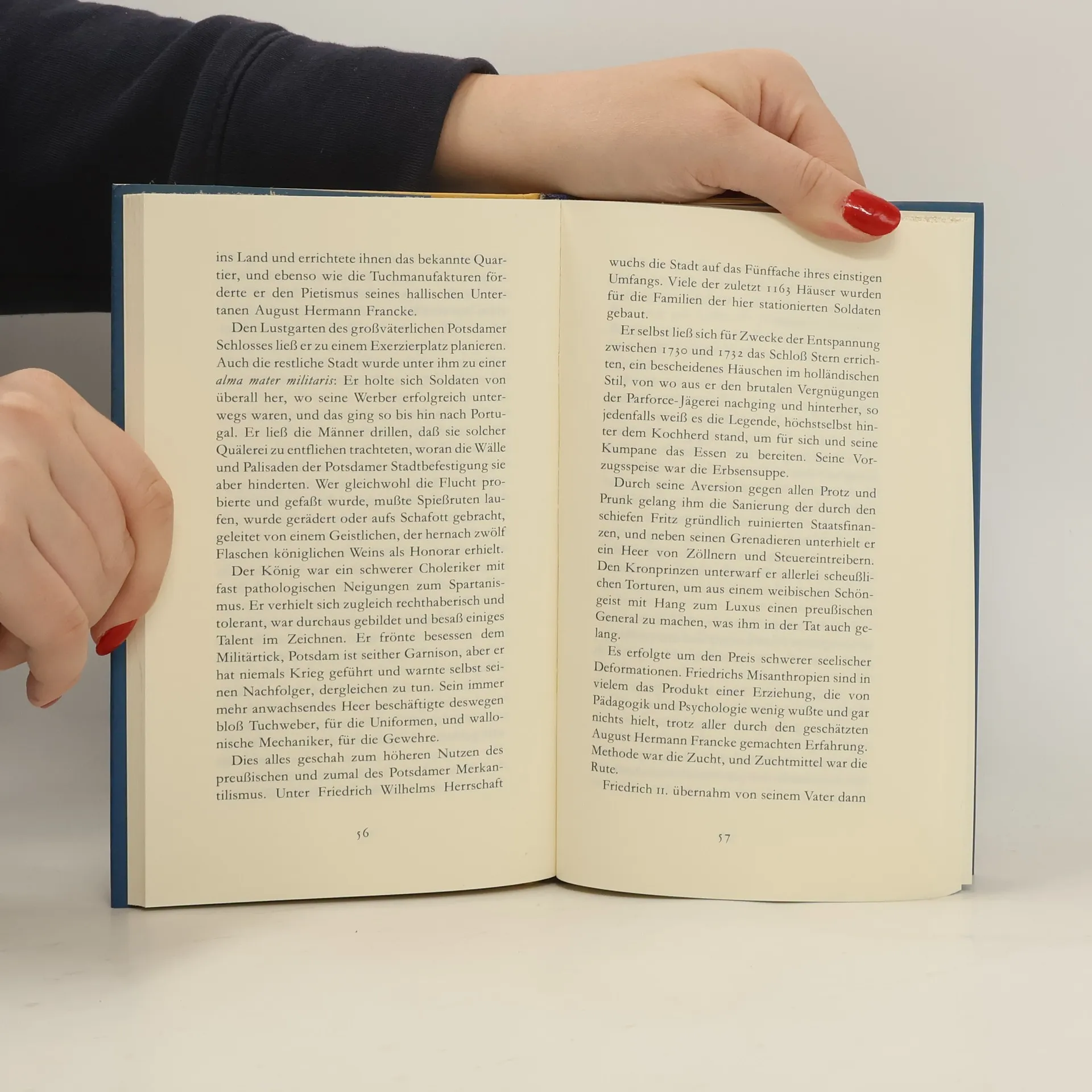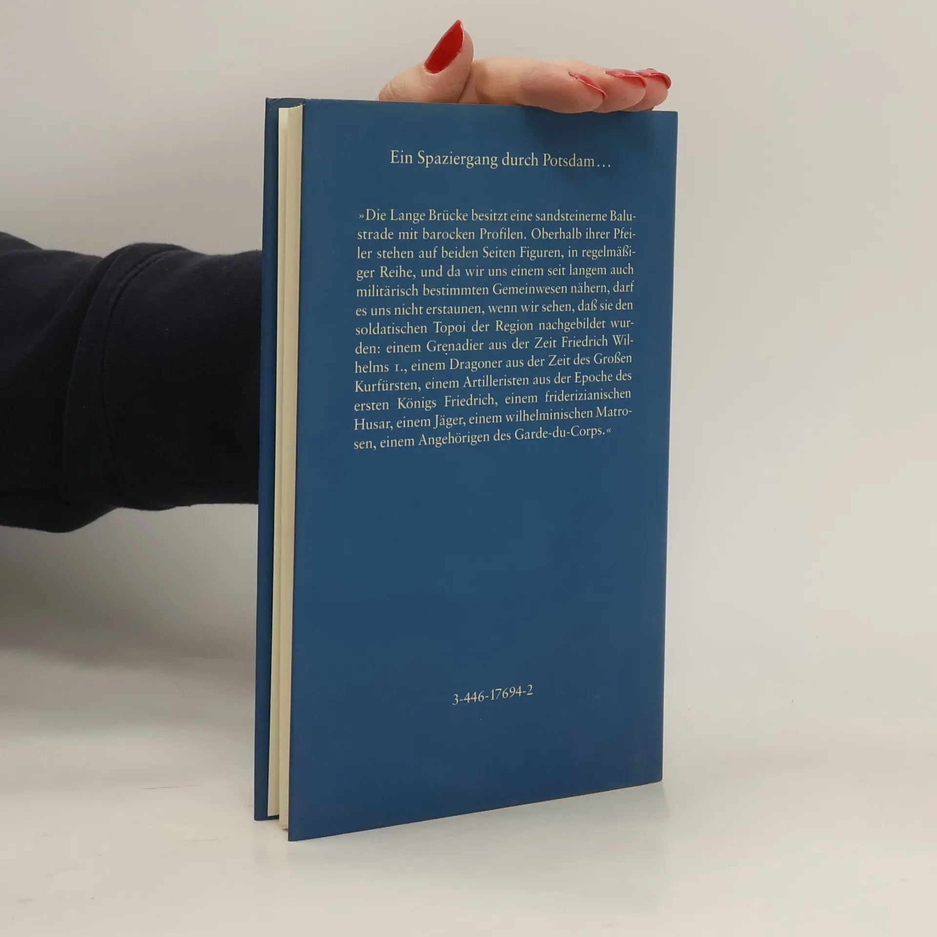 Rolf Schneider macht einen ausgedehnten Spaziergang durch das heutige und das historische Potsdam. Trotz des großen Berlins an seiner Seite konnte die kleine Stadt bisher ihre Eigenheiten behaupten. Durch die Preußenkönige wurde es zum Zentrum von Politik und Kultur. Die Kulisse hierfür wurde von bedeutenden Architekten gestaltet. Dem Potsdam der Gegenwart sagt Schneider jedoch voraus, daß es von Berlin verschlungen wird.