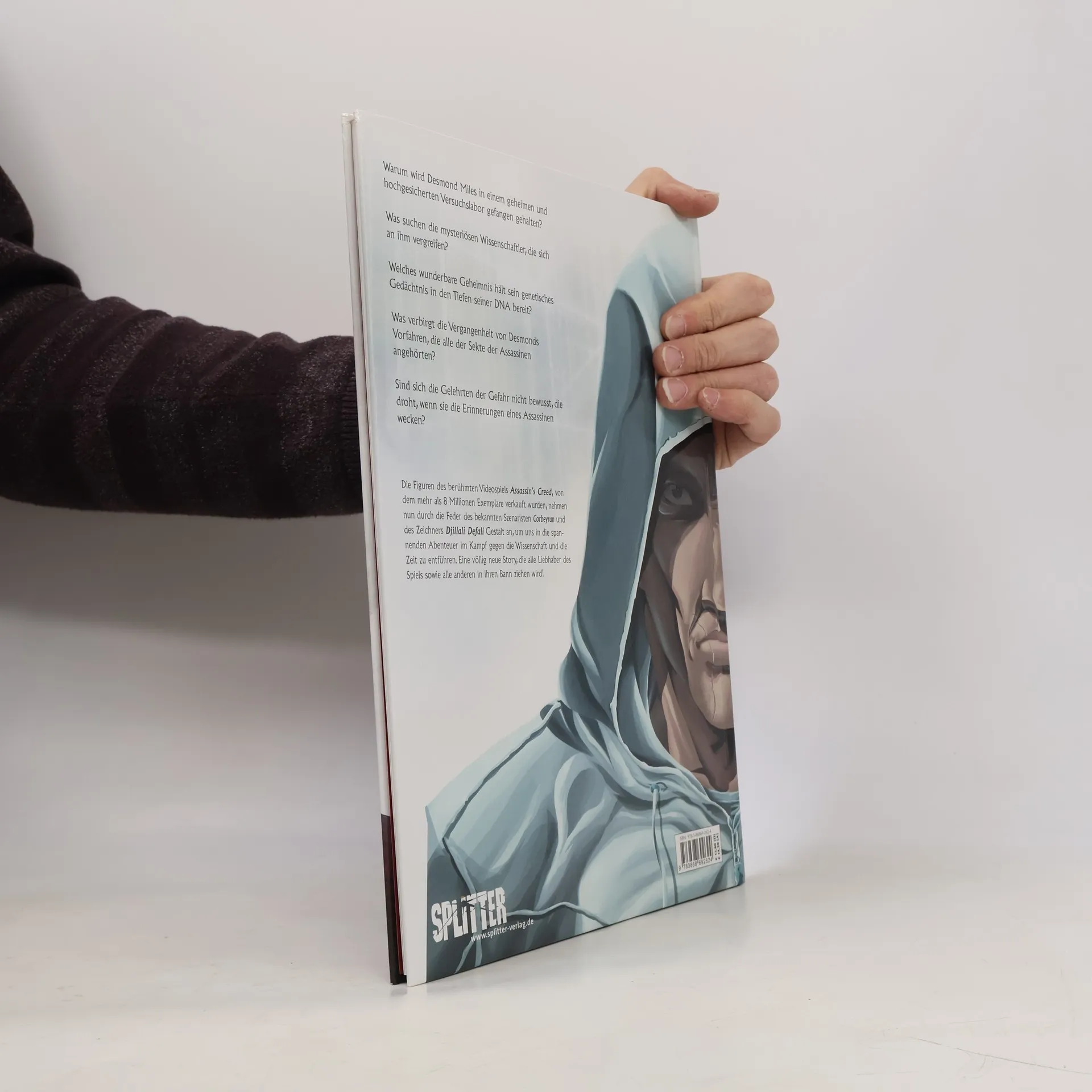 Warum wird Desmond Miles in einem geheimen und hochgesicherten Versuchslabor gefangen gehalten? Was suchen die mysteriösen Wissenschaftler, die sich an ihm vergreifen? Welches wunderbare Geheimnis hält sein genetisches Gedächtnis in den Tiefen seiner DNA bereit? Was verbirgt die Vergangenheit von Desmonds Vorfahren, die alle der Sekte der Assassinen angehörten? Sind sich die Gelehrten der Gefahr nicht bewusst, die droht, wenn sie die Erinnerungen eines Assassinen wecken? Die Figuren des berühmten Videospiels Assassin’s Creed, von dem mehr als 8 Millionen Exemplare verkauft wurden, nehmen nun durch die Feder des bekannten Szenaristen Corbeyran und des Zeichners Djillali Defali Gestalt an, um uns in die spannenden Abenteuer im Kampf gegen die Wissenschaft und die Zeit zu entführen. Eine völlig neue Story, die alle Liebhaber des Spiels sowie alle anderen in ihren Bann ziehen wird!