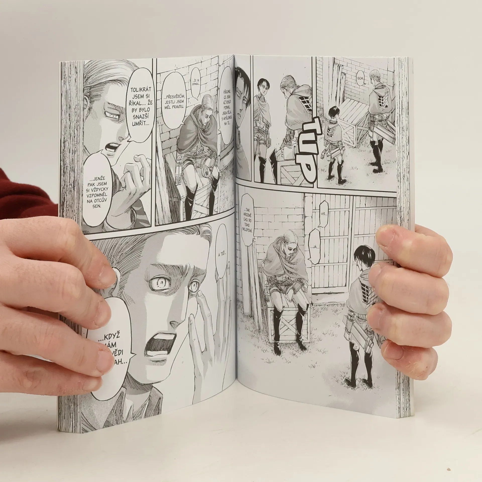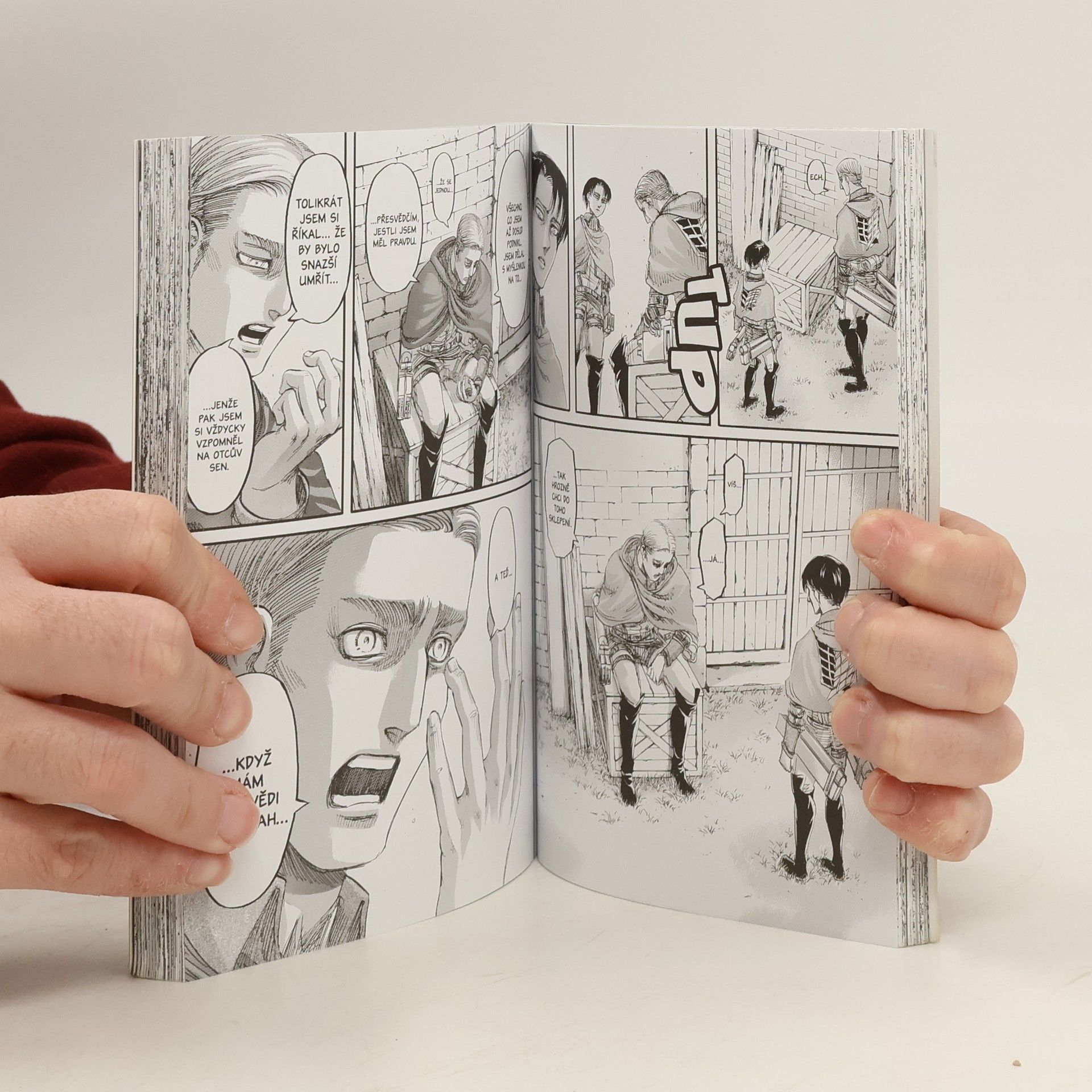 Hledání pravdy o světě tam venku zavádí průzkumníky až do Titány zamořené čtvrti Šiganšina, jen co by kamenem dohodil od Erenova rodného domu. Pouští se do provedení Erenova zásadního plánu na dobytí zdi Maria. Jenže trojice mocných Titánů tu už na ně čeká… Zdroj: https://crew.inshop.cz/%3C027212%3E-utok-titanu-20-predobjednavka-30.7.2019