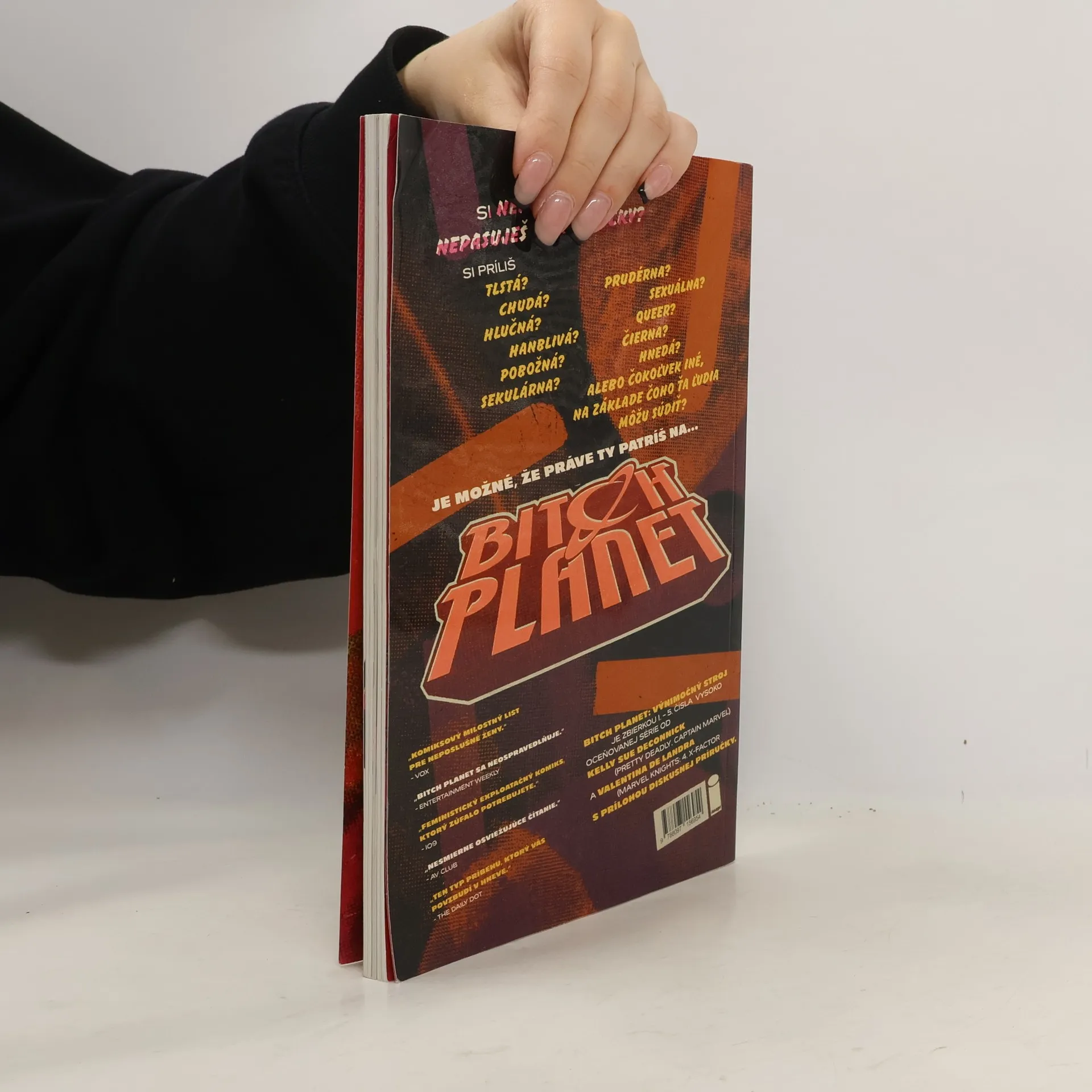 Si príliš neposlušná? Nepasuješ do škatuľky? Si príliš tlstá? Chudá? Hlučná? Hanblivá? Pobožná? Sekulárna? Pruderná? Sexuálna? Queer? Čierna? Hnedá? Alebo čokoľvek iné na základe čoho ťa ľudia môžu súdiť? B*tch Planet: Výnimočný stroj je zbierkou 1. - 5. čísla vysoko oceňovanej série od Kelly Sue DeConnick (Pretty Deadly, Captain Marvel) a Valentina De Landro (Marvel Knights: 4. X-Factor) s prílohou diskusnej príručky.