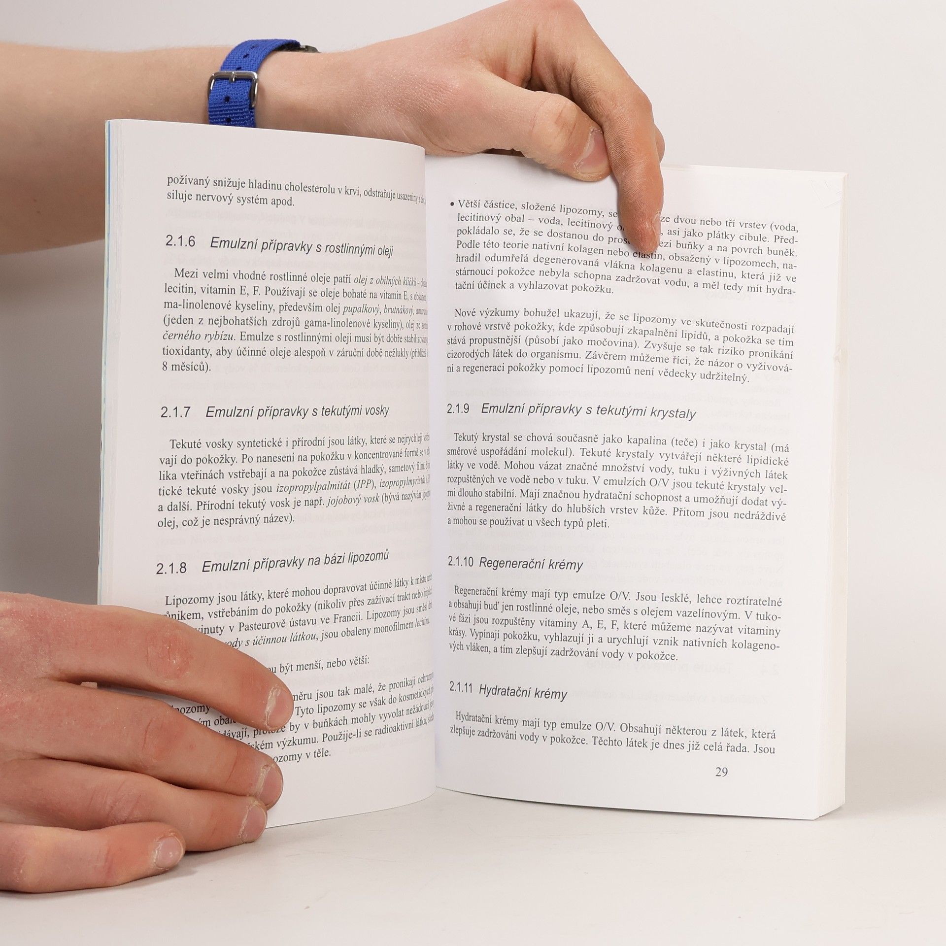 Učebnice přehledně popisuje kosmetické přípravky k čištění pleti, vyhlazování pokožky, líčení, depilaci, epilaci a dezinfekci, dále seznamuje s přípravky pro pedikúru, čištění zubů, mytí a fixaci vlasů a zmiňuje se o přípravcích k ochraně pleti při opalování a přípravcích s obsahem vonných látek. Obálka: Luboš Walter
