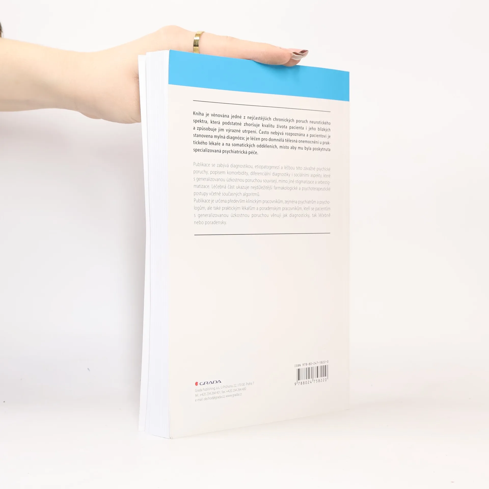 Kniha je věnována jedné z nejčastějších chronických poruch neurotického spektra, která podstatně zhoršuje kvalitu života pacienta i jeho blízkých a způsobuje jim výrazné utrpení. Často nebývá rozpoznána a pacientovi je stanovena mylná diagnóza; je léčen pro domnělá tělesná onemocnění u praktického lékaře a na somatických odděleních, místo aby mu byla poskytnuta specializovaná psychiatrická péče. Monografie se zabývá diagnostikou, etiopatogenezí a léčbou této závažné psychické poruchy, popisem komorbidity, diferenciální diagnostiky i sociálními aspekty, které s generalizovanou úzkostnou poruchou souvisejí, mimo jiné stigmatizace a sebestigmatizace. Léčebná část ukazuje nejdůležitější farmakologické a psychoterapeutické postupy včetně současných algoritmů. Publikace je určena především klinickým pracovníkům, zejména psychiatrům a psychologům, ale také praktickým lékařům a poradenským pracovníkům, kteří se pacientům s generalizovanou úzkostnou poruchou věnují jak diagnosticky, tak léčebně nebo poradensky.