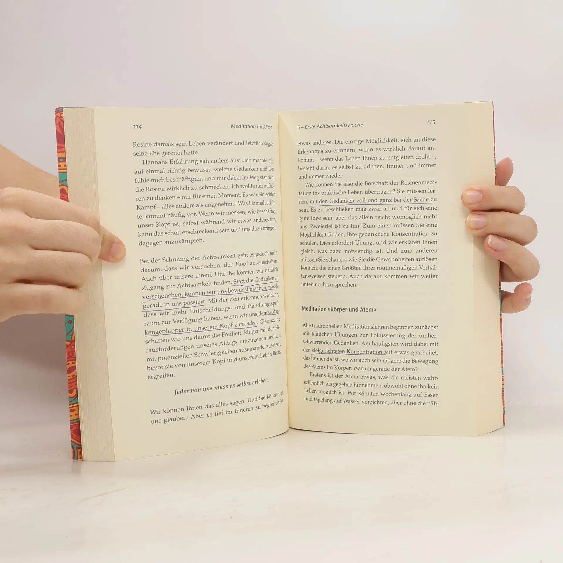 Das Anti-Stress-Programm der University of Oxford Es sind nur zwanzig Minuten täglich, aber sie können das Leben verändern. In unserer von Zeitdruck, Hektik und permanenter Erreichbarkeit geprägten Zeit brauchen wir dringend Wege, effektiv zu entspannen und wieder zu uns selbst zu finden. Das Wunderwort heißt „Achtsamkeit“: kurz anhalten, ruhig atmen und von sich selbst Abstand nehmen. Achtsamkeit ist jedoch nicht nur eine Idee, es ist eine Art zu leben. Schritt für Schritt zeigen Mark Williams und Danny Penman, wie das im Alltag auch tatsächlich geht. Ihr Programm, dessen Wirksamkeit wissenschaftlich nachgewiesen ist, enthält Kurzmeditationen, Übungen zur Körperwahrnehmung und Anregungen, eingeschliffene Gewohnheiten zu durchbrechen. Es bietet den großen Vorteil, sich wunderbar in den Alltag integrieren zu lassen und ist auch für Anfänger bestens geeignet. Bereits nach acht Wochen sind wir deutlich ruhiger und entdecken unsere Lebensfreude wieder. Das Buch erschien ursprünglich unter dem Titel "Meditation im Alltag" als gebundenes Buch im Arkana Verlag. 74 min.