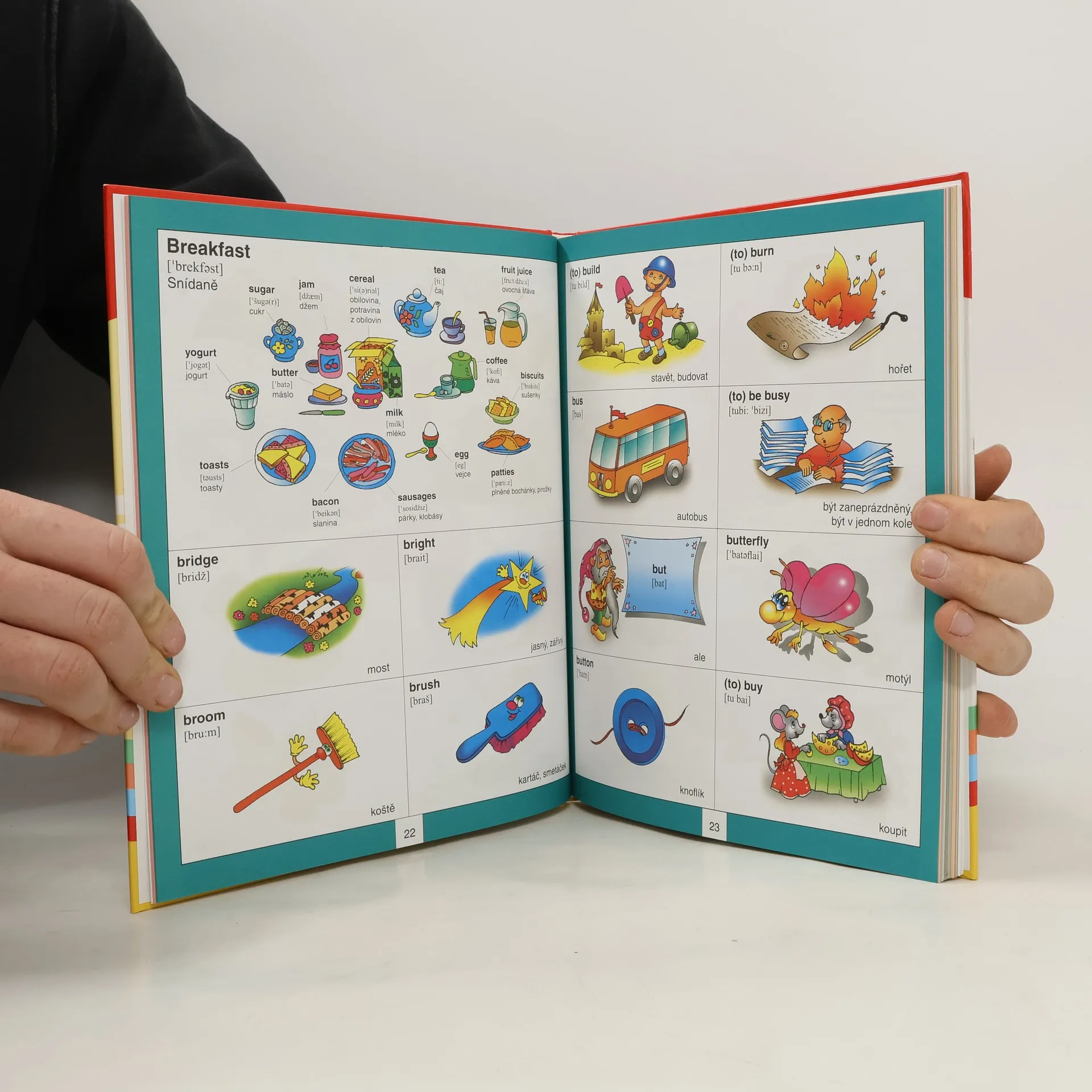 Kniha pomáhá dětem prostřednictvím spojování slov s obrázky snáze zvládnout základy anglického jazyka.