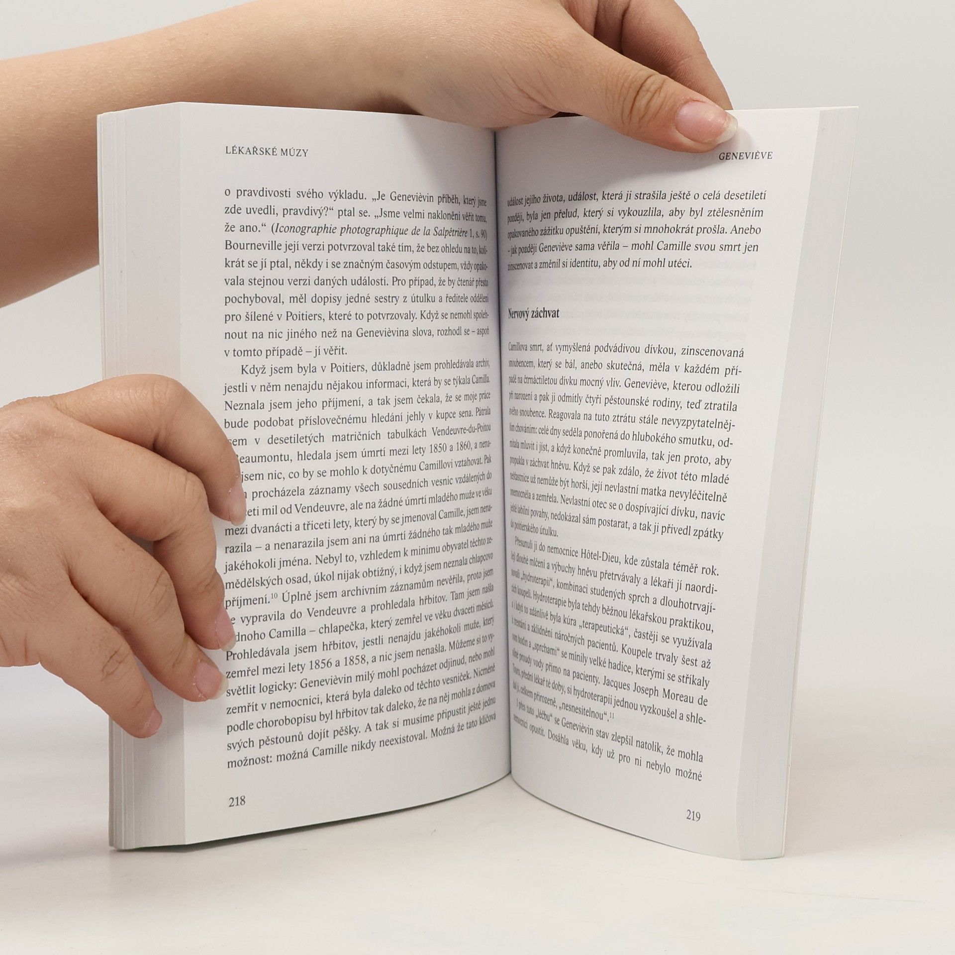 Jedním z pozoruhodných center pařížského vědeckého a kulturního života druhé poloviny 19. století byla psychiatrická nemocnice Le Salpetriere, která se díky působení svého ředitele, psychiatra Jeana-Martin Charcota, stala místem, které vyhledávali lékaři, vědci, filozofové, spisovatelé a básníci, malíři a fotografové, ale i dramatici, herci a bohémové. Nemocnice se stala samostatným městem ve městě, kde se léčili psychicky nemocní, především ženy-hysterky, a kde se v rámci veřejných představení utvářely v přímém přenosu dějiny psychiatrie a psychologie. Autorka se ve své knize zabývá jednak osobností J.-M. Charcota a specifickým místem nemocnice Le Salpetriere ve vědeckých a kulturních dějinách, ale především rekonstruuje život a osudy jeho tří „lékařských múz“, pacientek, které se ve své době staly svého druhu celebritami. „Velká“ historie psychiatrie se tak střetává s „malou“ historií tří psychicky nemocných žen na samém okraji společnosti, které se ve správný čas ocitly na správném místě a byly schopné pozoruhodným způsobem těžit ze své situace. Kniha je fascinující koláží z dějin psychiatrie, psychologie a lékařské každodennosti, stejně jako sondou do života Paříže přelomu 19. a 20. století. Pojednává o době, kdy se ještě pevně nevyhranily rozdíly mezi vědou a šarlatánstvím, exaktností a poezií.