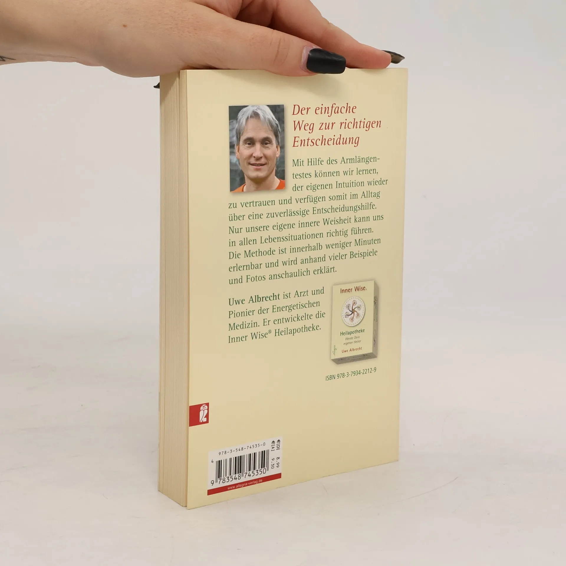 Mit Hilfe des Armlängentestes können wir lernen, der eigenen Intuition wieder zu vertrauen und verfügen somit im Alltag über eine zuverlässige Entscheidungshilfe. Nur unsere eigene innere Weisheit kann uns in solchen Situationen richtig führen. Die Methode ist innerhalb weniger Minuten erlernbar und wird anhand vieler Beispiele und Fotos anschaulich erklärt.