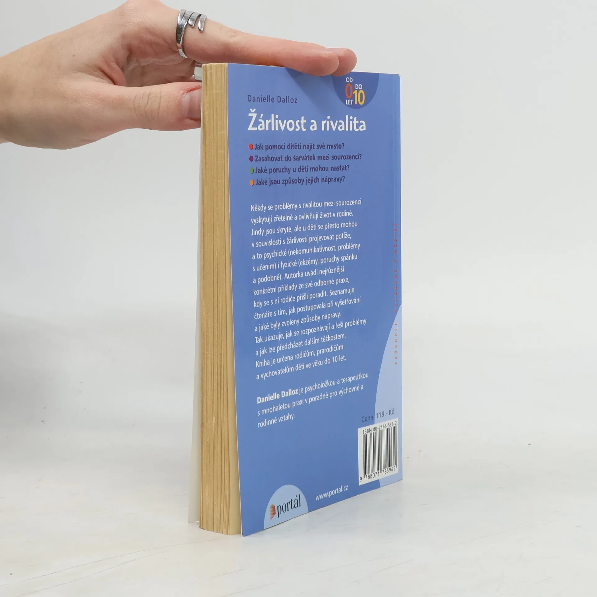 Soužití mladších a starších sourozenců Existuje ideální věkový rozdíl? Je dětská žárlivost chybou rodičů? Jak řešit problémy v rodině? Někdy se problémy s rivalitou mezi sourozenci vyskytují zřetelně a ovlivňují život v rodině. Jindy jsou skryté, ale u dětí se přesto mohou v souvislosti s nimi projevovat potíže, a to psychické (nekomunikativnost, problémy s učením) i fyzické (ekzémy, poruchy spánku a podobně). Autorka seznamuje čtenáře s tím, jak postupovala při vyšetřování konkrétních případů a jaké byly zvoleny způsoby nápravy.