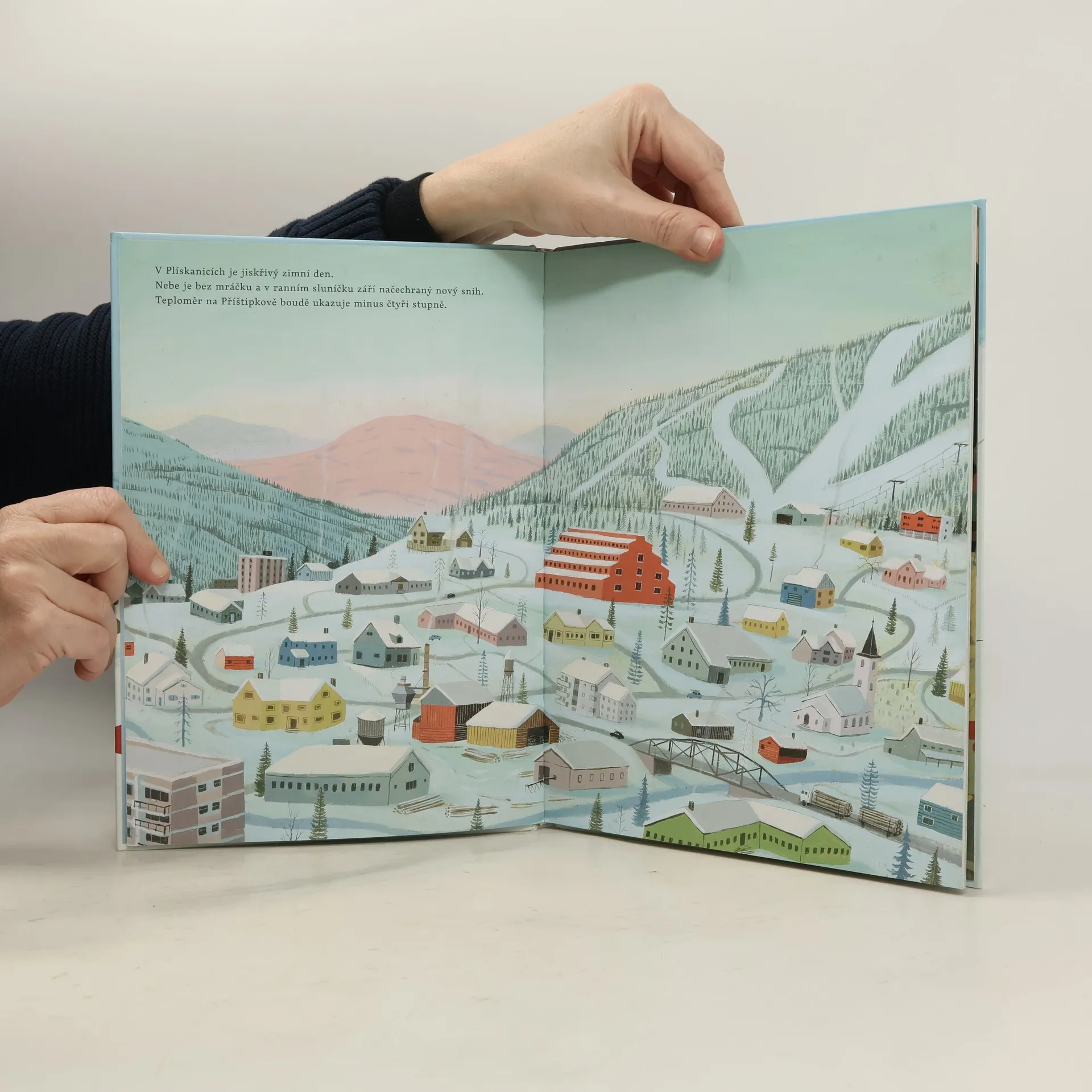 Hurá na hory! Kdo přijede do Plískanic, nebude ochuzen o žádnou zimní zábavu: lyžování všeho druhu, skoky z boulí i ze střechy, slunění na vysokohorském slunci, arktický rybolov, pravá norská svačinka s pomerančem a čokoládou Kviklunsj i kolekce lyžařských kukliček, to vše ze štětce mladého norského výtvarníka a ilustrátora Bjorna Runa Lieho. Radost z malování, zimní krajiny zaplněné malými ději i skutečnými norskými reáliemi podává autor s notnou dávkou humoru, smyslem pro detail a samozřejmě s lyžařskou nostalgií.