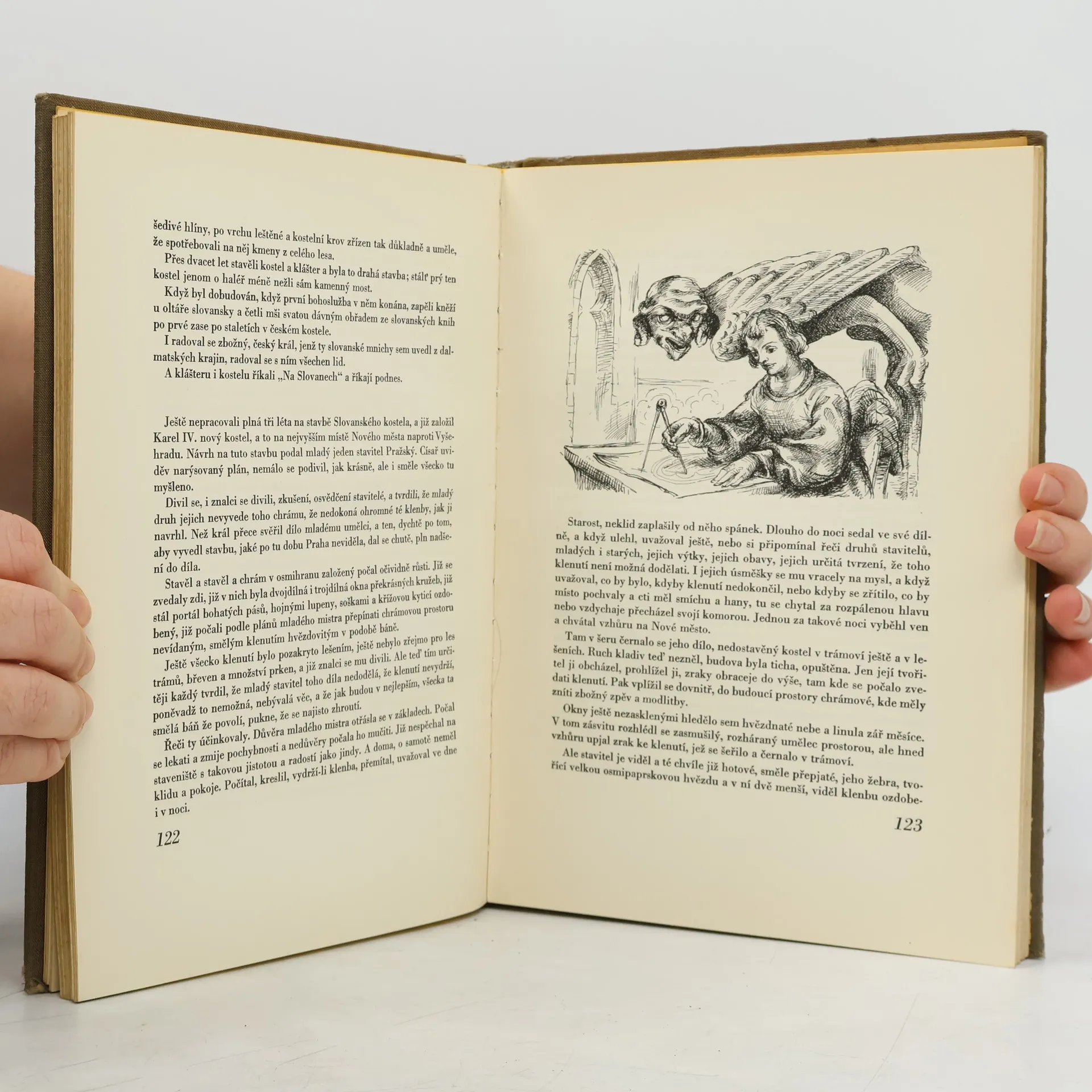 Poslyšte o našem praotci, o předcích, jak přišli do končin naší vlasti a usadili se po Labi a po Vltavě i po jiných řekách této země. Slyšte i, co více dochovalo se z temnoty věků, co zůstalo z báječných vypravování přešlých pokolení, jež klaněla se bohům v šeru starých hájů a jež obětovala studánkám v tichých ouvalech, jezerům i řekám i svatému, živému ohni ... Pojďte a poslyšte pověsti dávných časů...