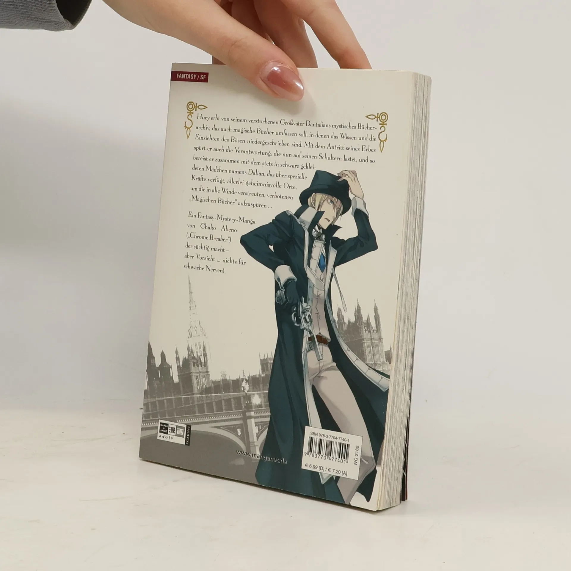 Huey erbt von seinem verstorbenen Großvater Dantalians mystisches Bücherarchiv, das auch magische Bücher umfassen soll, in denen das Wissen und die Einsichten des Bösen niedergeschrieben sind. Mit dem Antritt seines Erbes spürt er auch die Verantwortung, die nun auf seinen Schultern lastet, und so bereist er zusammen mit dem stets in schwarz gekleideten Mädchen namens Dalian, das über spezielle Kräfte verfügt, allerlei geheimnisvolle Orte, um die in alle Winde verstreuten, verbotenen „Magischen Bücher“ aufzuspüren … Ein Fantasy-Mystery-Manga von Chako Abeno („Chrome Breaker“) der süchtig macht – aber Vorsicht … nichts für schwache Nerven!