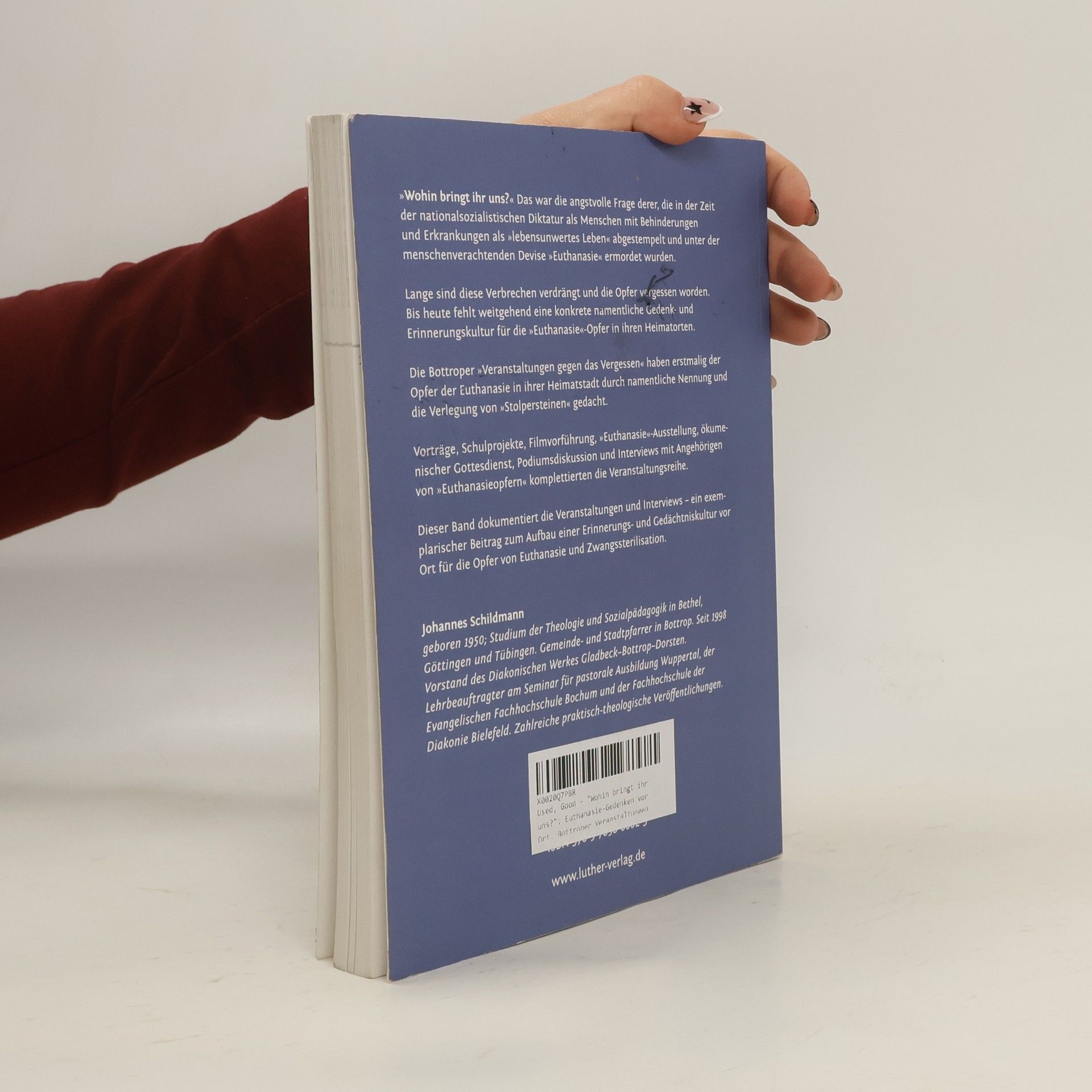 'Wohin bringt ihr uns?' Die angstvolle Frage behinderter und kranker Menschen, die unter den Nazis als 'lebensunwertes Leben' ermordet wurden. Dieser Band dokumentiert Veranstaltungen, Filme, Stopersteinverlegungen, Gottesdienst und Interviews als exemplarischer Beitrag zum Aufbau einer Erinnerungs- und Gedächtniskultur vor Ort für die Opfer von Euthanasie und Zwangssterilisation.