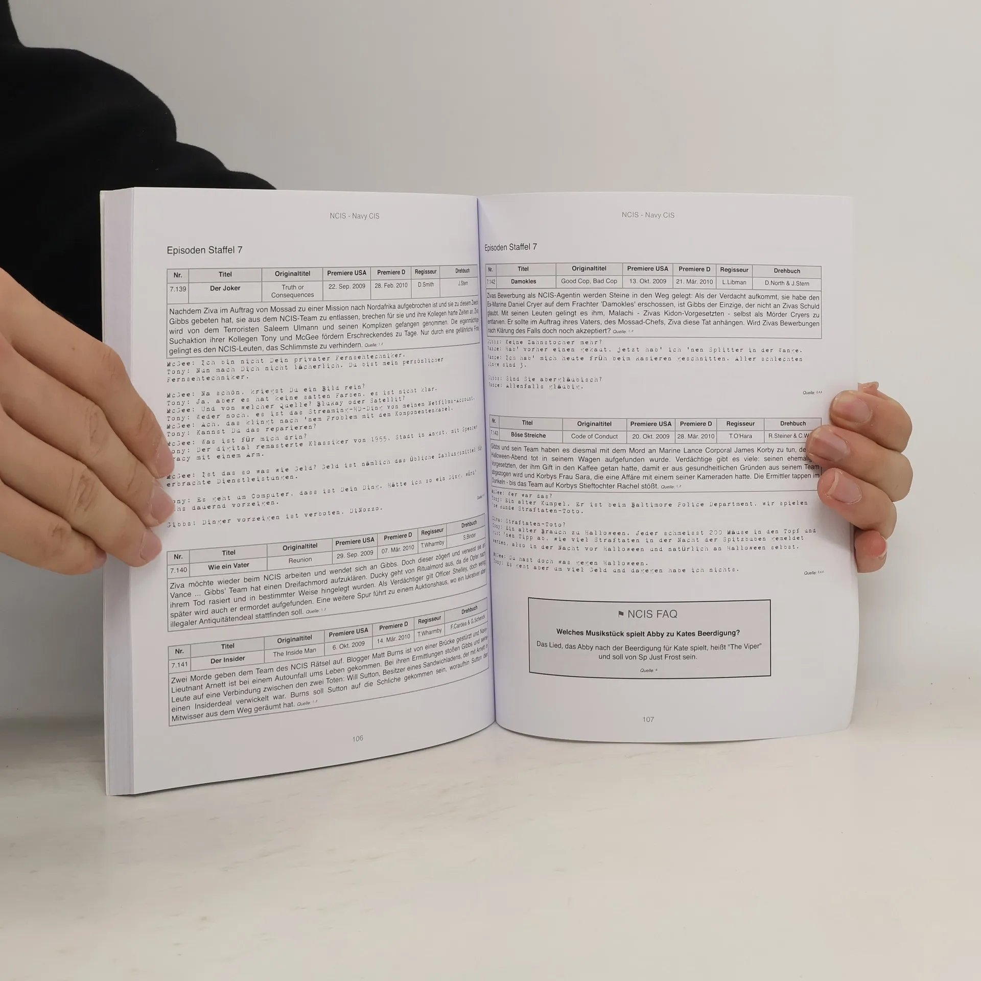 Die immer wieder spannende und unterhaltsame Auflösung der Kriminalfälle von Leroy Jethro Gibbs (Cover-Foto), dargestellt von Mark Harmon, mit seinem NCIS-Team begeistern seit mehr als acht Jahren weltweit eine große Anzahl von Fernsehzuschauern und machte NCIS zu einer der erfolgreichsten Serien unserer Zeit. Sowohl in den USA als auch in Deutschland ist NCIS derzeit wohl die meist gesehene Fernsehserie.Dieses Fanbuch zu den TV-Staffeln 1-9 enthält neben allgemeinen Informationen zur Serie Daten und Kurzbeschreibungen aller Episoden, ausführliche Steckbriefe der Charaktere, Beschreibungen der Nebenfiguren und natürlich die besten Sprüche von Gibbs, Tony, Kate, Ziva, McGee, Abby, Ducky, Palmer & Co.