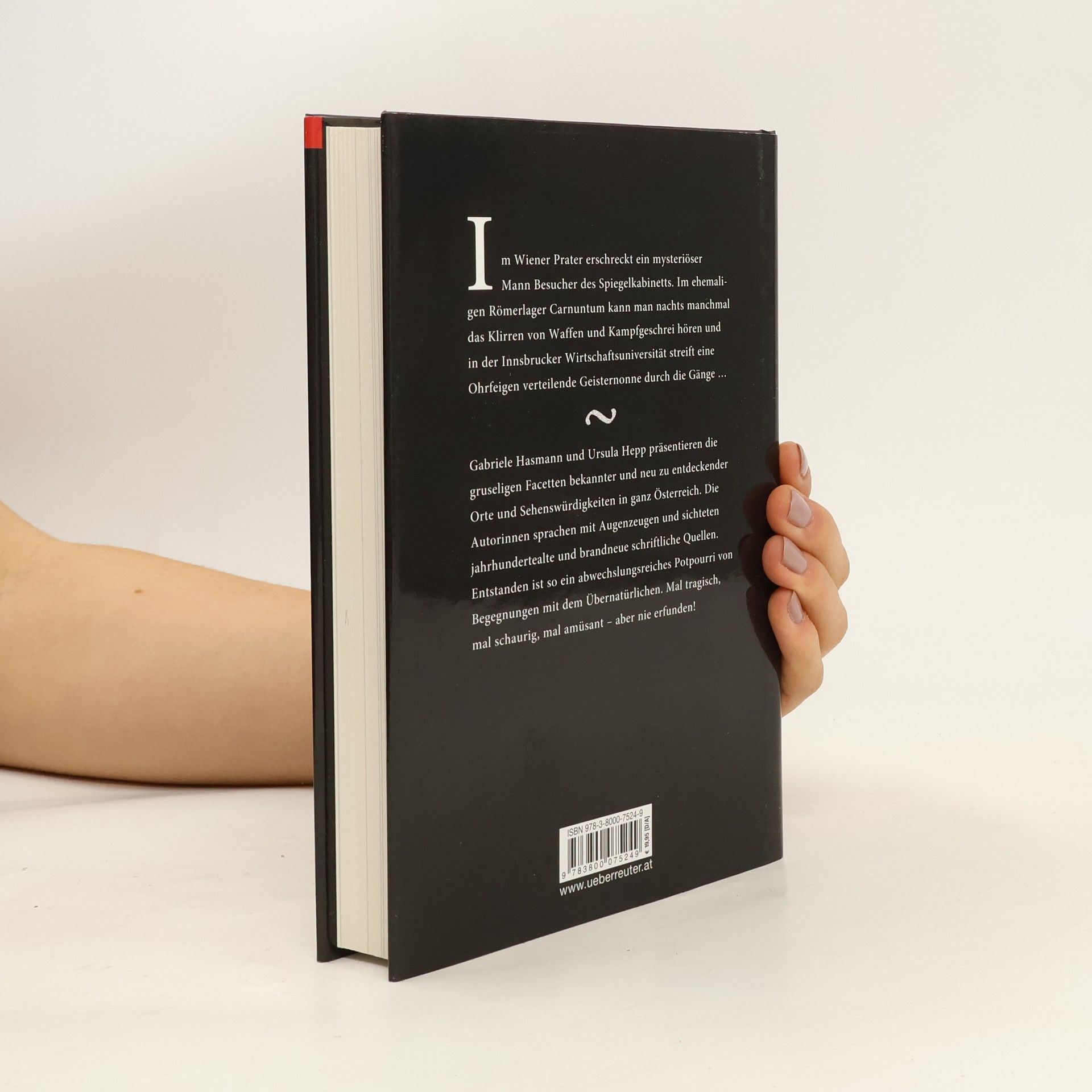 Im Wiener Prater erschreckt ein mysteriöser Mann Besucher des Spiegelkabinetts. Im ehemaligen Römerlager Carnuntum kann man nachts manchmal das Klirren von Waffen und Kampfgeschrei hören und in der Innsbrucker Wirtschaftsuniversität streift eine Ohrfeigen verteilende Geisternonne durch die Gänge... Gabriele Hasmann und Ursula Hepp präsentieren die gruseligen Facetten bekannter und neu zu entdeckender Orte und Sehenswürdigkeiten in ganz Österreich. Die Autorinnen sprachen mit Augenzeugen und sichteten jahrhundertealte und brandneue schriftliche Quellen. Entstanden ist so ein abwechslungsreiches Potpourri von Begegnungen mit dem Übernatürlichen. Mal tragisch, mal schaurig, mal amüsant – aber nie erfunden! Aus dem Inhalt:– Wiener Wurstelprater: Der betrunkene Zauberer im Spiegelkabinett– Michaelergruft Wien: Die weiße Frau in der Wandnische– Seegrotte Hinterbrühl: Zwangsarbeiter, blinde Pferde und fünf Wasserleichen– Linzer Schloss: Fluchende Geister beim „Trutzbauern“– Kirche Bad Radkersburg: Der Blutrichter und die Hexe– Burgruine Plain: Das Kinderskelett im Torturm– Wirtschaftsuniversität Innsbruck: Die ohrfeigende Geisternonneu. v. m.