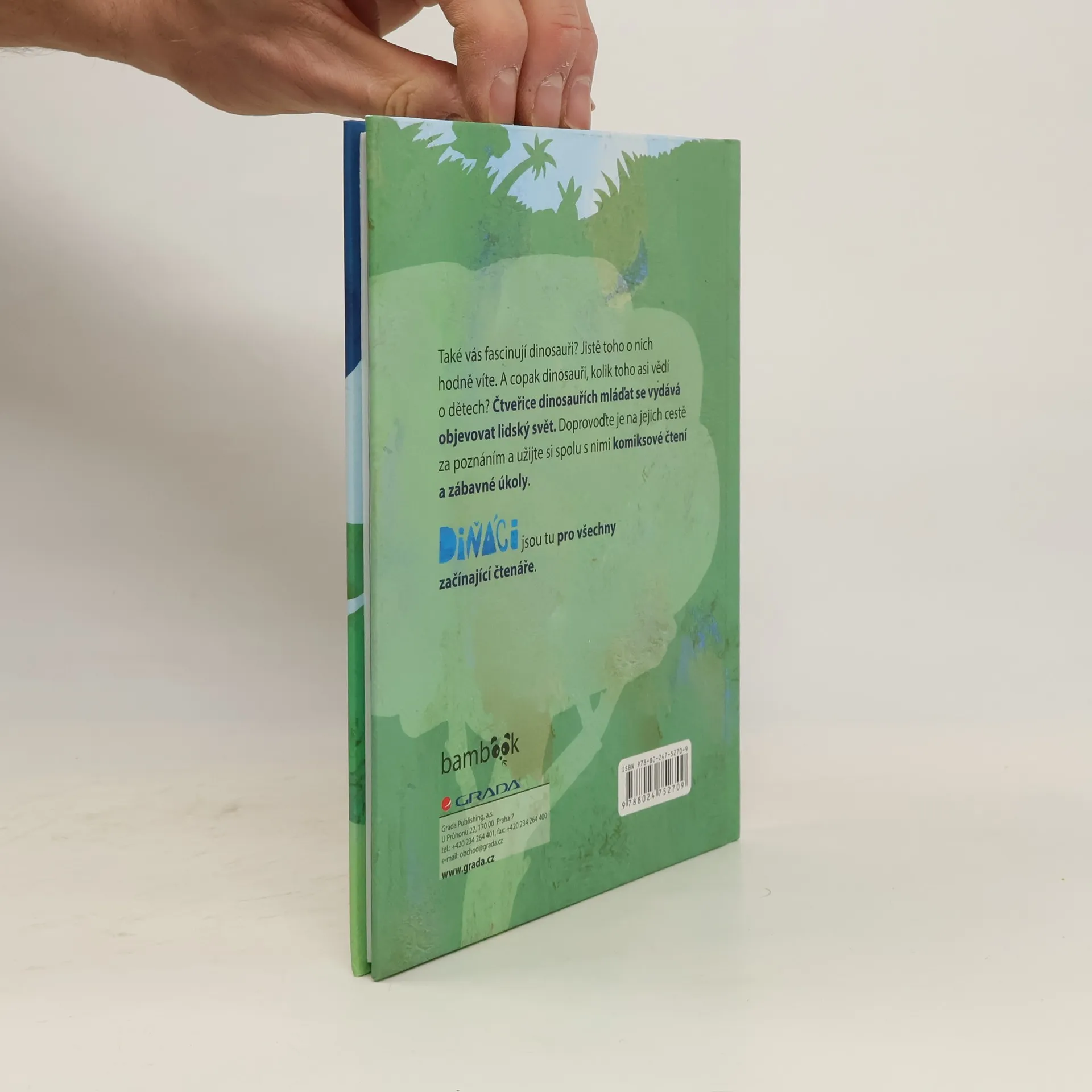 Také vás fascinují dinosauři? Jistě toho o nich hodně víte. A copak dinosauři, kolik toho asi vědí o dětech? Čtveřice dinosauřích mláďat se vydává objevovat lidský svět. Doprovoďte je na jejich cestě za poznáním a užijte si spolu s nimi komiksové čtení a zábavné úkoly. Diňáci jsou tu pro všechny začínající čtenáře. Mia, Albi, Bamba a Posi jsou malí dinosauři, kteří se právě vylíhli v jedné jeskyni. Náš svět je pro ně jedno velké dobrodružství. Musejí se naučit všechno, co se v lidské říši učí každé malé dítě - poznávat barvy, cvičit, zdravě jíst, číst, počítat, ale také vařit, nakupovat a uklízet. Tohle všechno se diňáci naučí v krátkých kapitolkách, které zvládne přečíst každý začínající čtenář. Za každou kapitolou čeká na děti zábavný a poučný úkol a dvoustránka s dinosauřím komiksem.