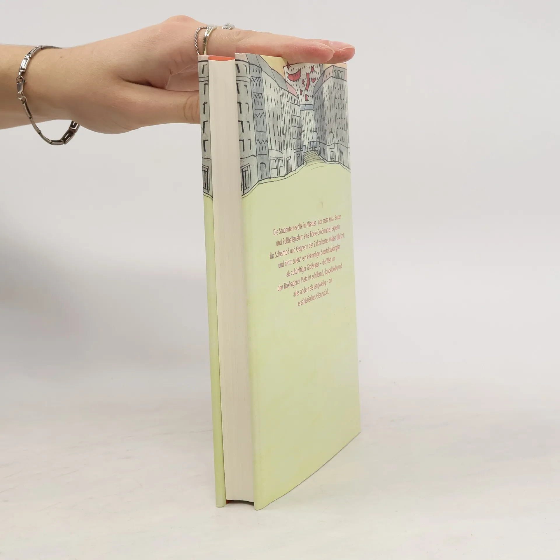 Die Studentenrevotle im Westen; der erste Kuss; Boxen und Fussballspielen; eine fidele Grossmutter - Expertin für Scheintod und Gegnerin des Zickenbarts Walter Ulblricht - und nicht zuletzt ein ehemaliger Spartakuskämpfer als zukünftiger Grossevater - die Welt um den Boxhagener Platz ist schillernd, doppelbödig uind alles andere als langweilig.