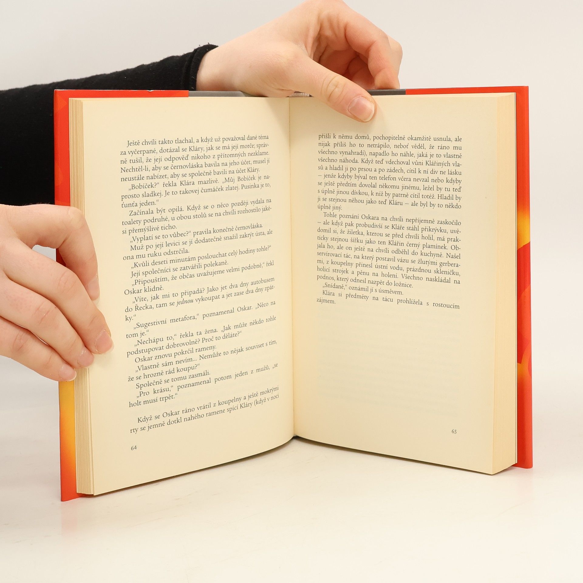 "K případné otázce, z jakých pochybných pohnutek jsem si zvolil právě téma sexu, bych nejprve rád uvedl několik stručných čísel (čísla nelžou): Podle Světové zdravotnické organizace myslí žena na sex v průměru třicetkrát denně, a to i v klimakteriu; muž, bez ohledu na věk, průměrně každých osm minut. Podle šetření českých sexuologů má český muž za svůj život v průměru dvanáct intimních partnerek; současná česká dívka stihne do svých devětadvaceti let vystřídat více než šest sexuálních partnerů. Nyní se snad už mohu odvážit říci, že jsem si téma sexu zvolil z pohnutek víceméně osobních." Michal Viewegh