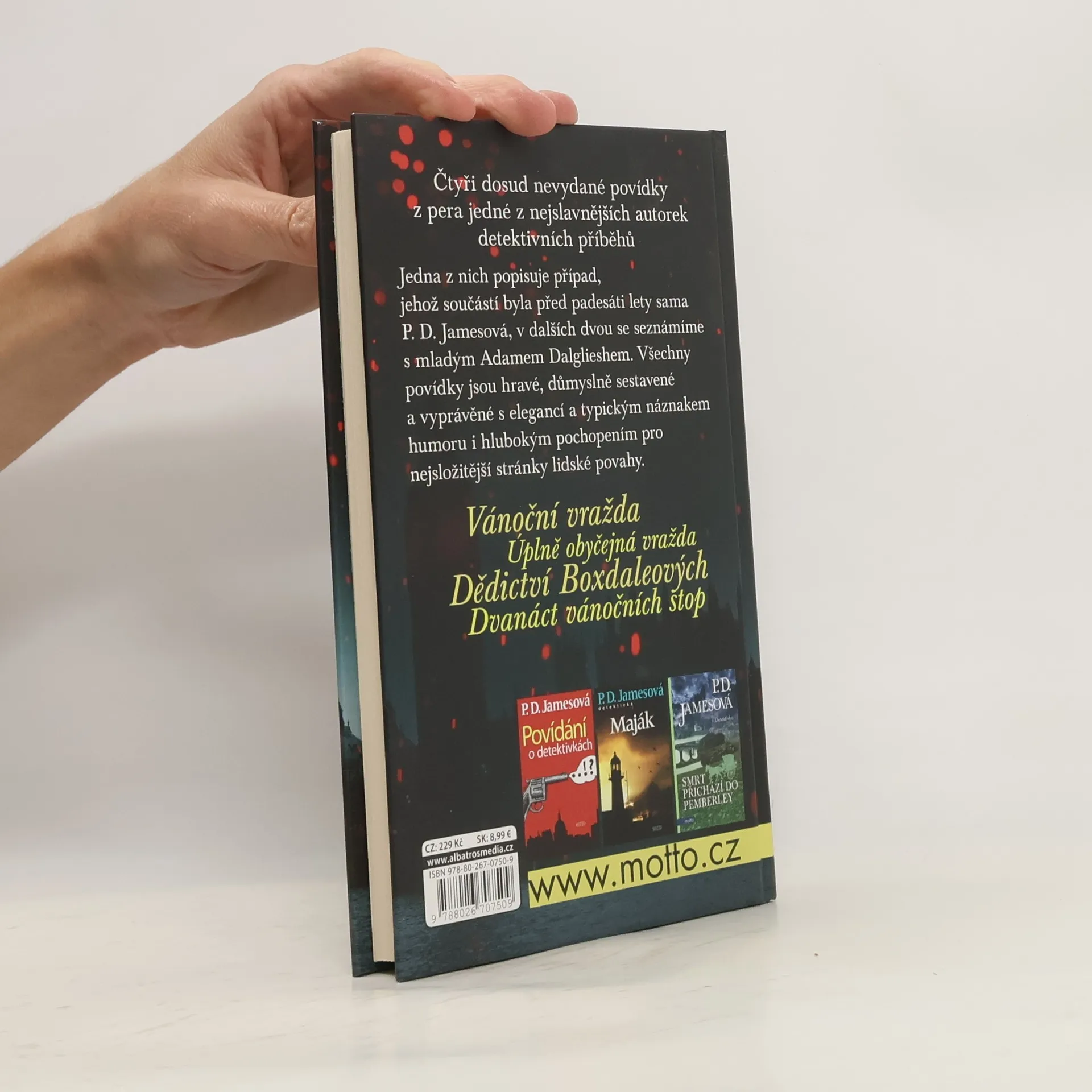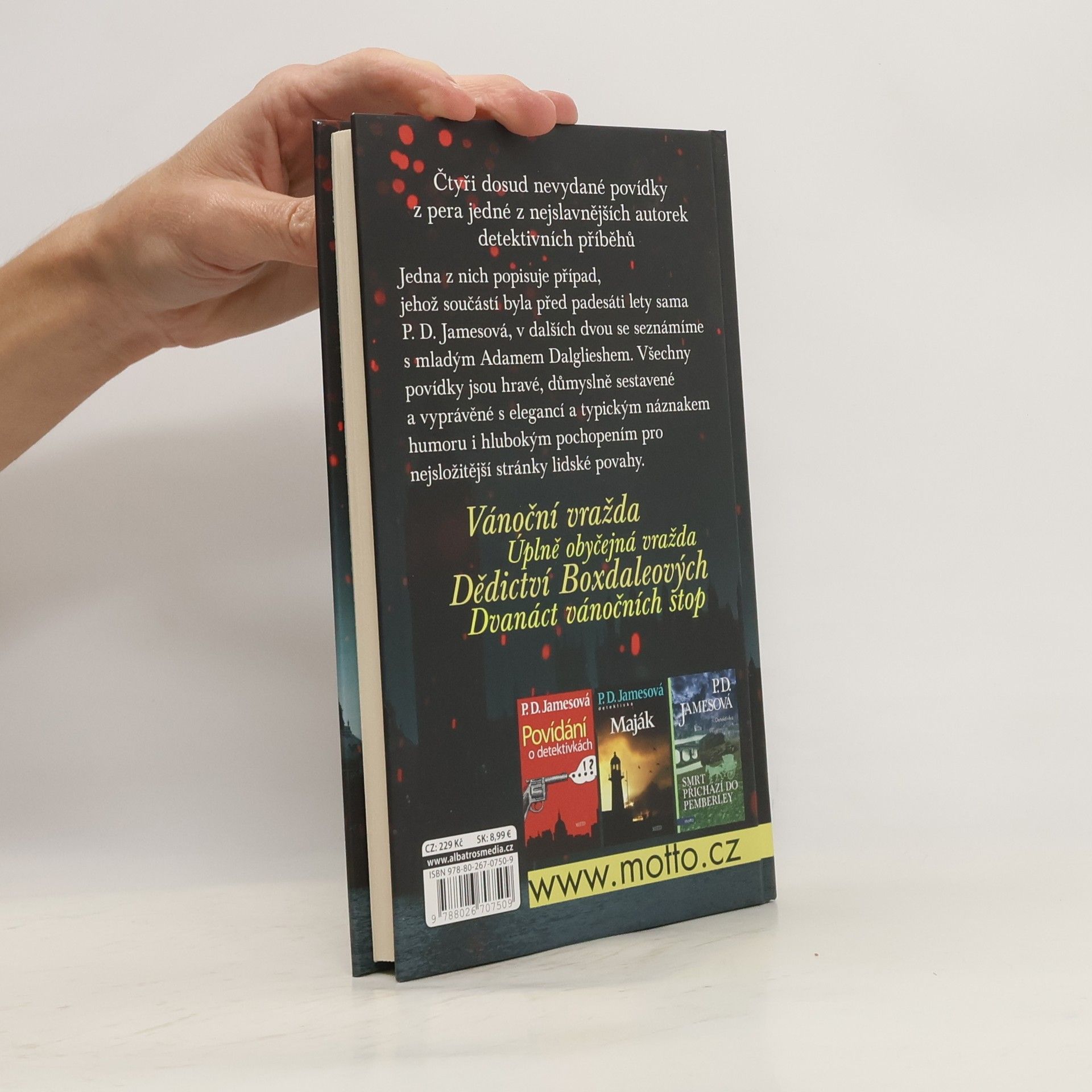 Čtyři dosud nevydané povídky z pera jedné z nejslavnějších autorek detektivních příběhů. Jedna z nich popisuje případ, jehož součástí byla před padesáti lety sama P. D. Jamesová, v dalších dvou se seznámíme s mladým Adamem Dalglieshem. Všechny povídky jsou hravé, důmyslně sestavené a vyprávěné s elegancí a typickým náznakem humoru i hlubokým pochopení pro nejsložitější stránky lidské povahy.