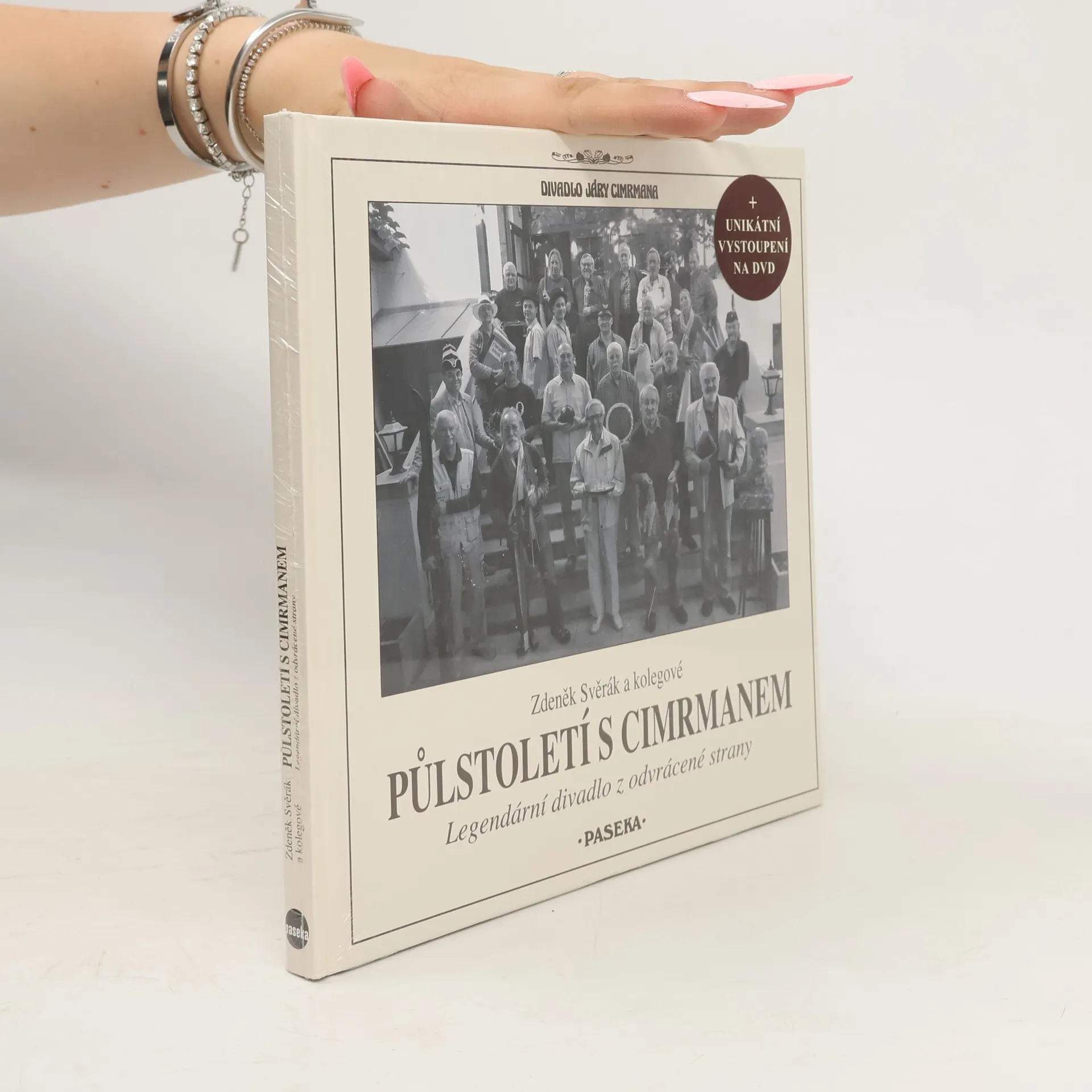 Legendární divadlo z odvrácené strany. Unikátní knížka, která vychází při příležitosti padesáti let Divadla Járy Cimrmana, přibližuje obrazem i textem neznámou tvář nejslavnějšího českého divadelního souboru. Zdeněk Svěrák bilancuje jeho historii formou soukromého dopisu Ladislavu Smoljakovi a každý člen divadla přidal svou nejživější vzpomínku. Čtenář se tak dozví, jak se přihodilo, že se Petr Brukner narodil ve dvou městech současně, čeho nejhoršího se dopustil Miloň Čepelka a jaký je největší herecký problém Miroslava Táborského. Pro fanoušky Járy Cimrmana bude překvapením, že souborem prošla řada známých osobností jako Jiří Menzel, Jiří Stivín nebo Jaroslav Uhlíř, a že v tomto zdánlivě ryze mužském divadle nechybějí ani ženy. Nepřeberné množství fotografií zachycuje herce v jejich výrazných rolích, ale většinou je objektiv namířen do zákulisí, a odkrývá tak dění, které zůstává publiku utajeno. Svazek obsahuje DVD se záznamy raritních vystoupení.