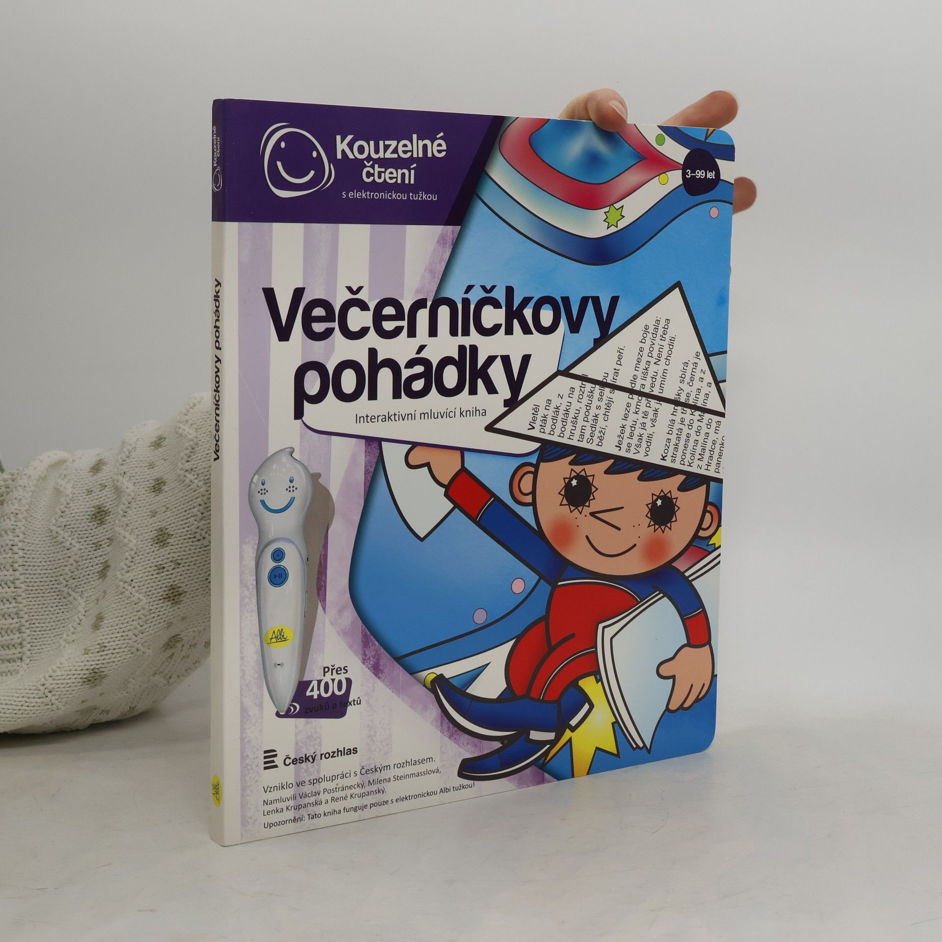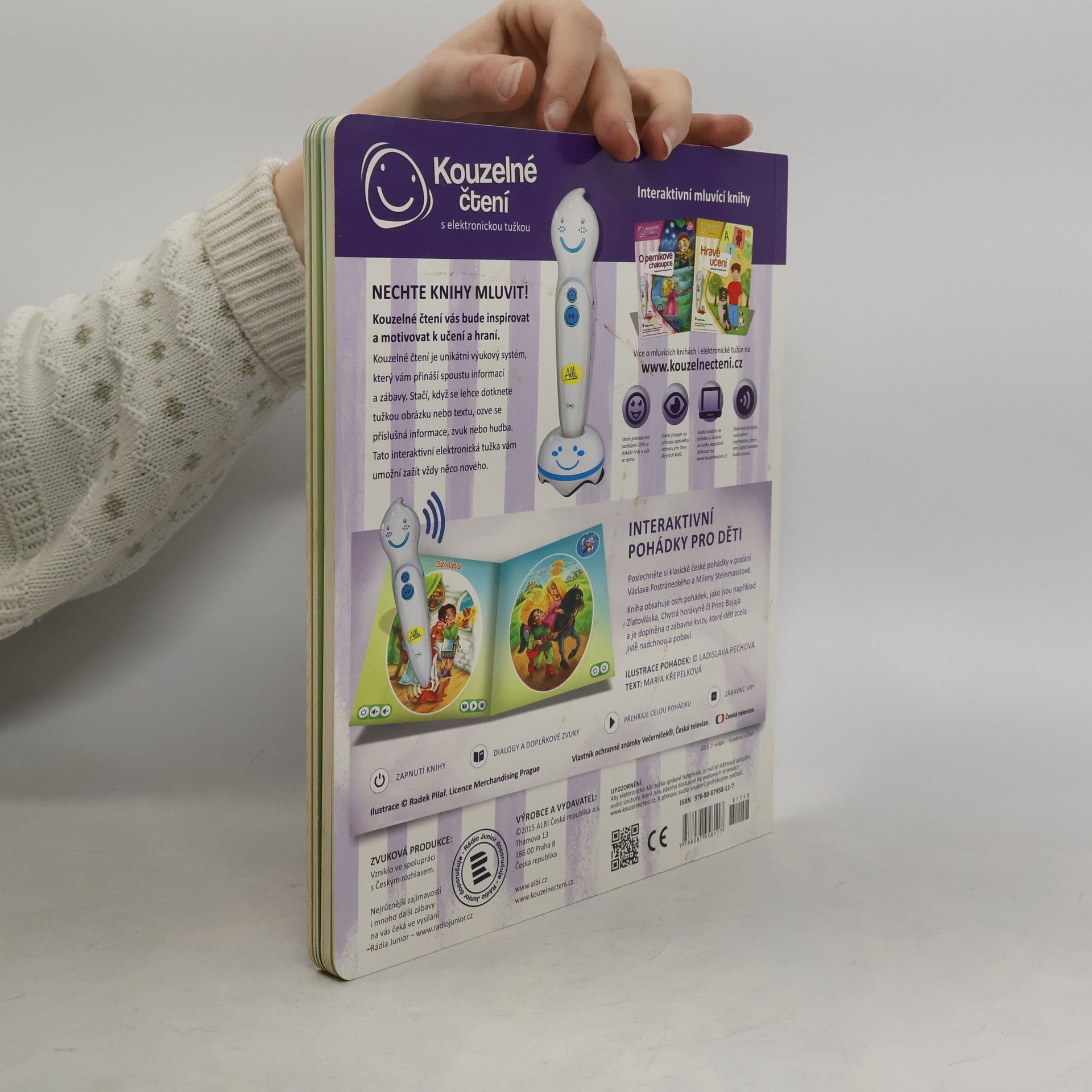Kouzelné pohádky s ALBI tužkou Poslechněte si klasické české pohádky v podání Václava Postráneckého a Mileny Steinmasslové. Kniha obsahuje osm pohádek - mezi nimi například pohádky Zlatovláska, Tři zlaté vlasy děda Vševěda, O Popelce, Chytrá horákyně a další. Kniha je doplněna o zábavné kvízy, které děti zcela jistě nadchnou a zabaví na dlouhou dobu. Kniha kouzelných pohádek obsahuje přes 400 zvuků a textů, vznikla ve spolupráci s Českým rozhlasem a namluvili Václav Postránecký, Milena Steinmasslová, Lenka Krupanská a René Krupanský.