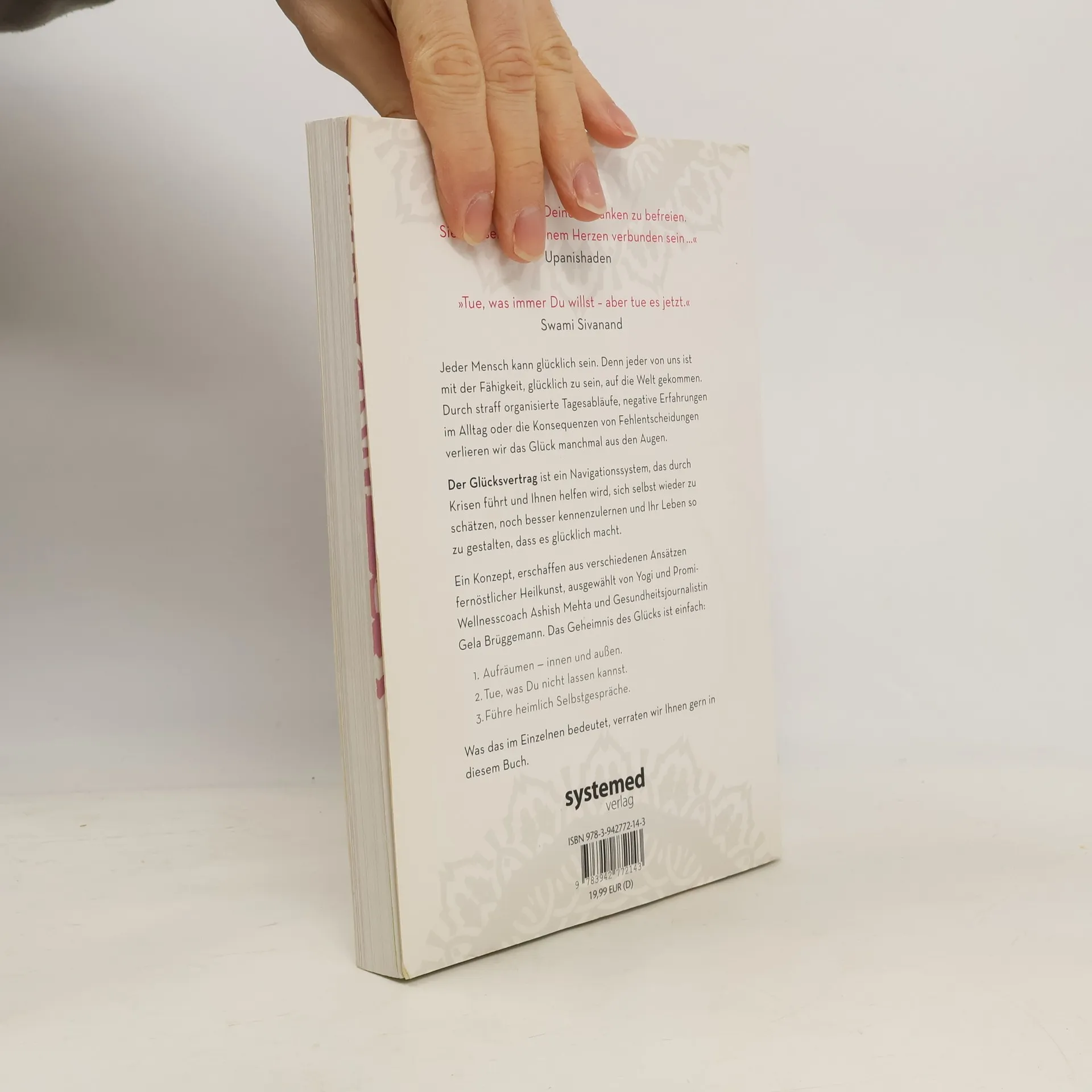 »Es reicht nicht, Deine Gedanken zu befreien. Sie müssen mit Deinem Herzen verbunden sein …« Mit dem Glücksvertrag den Weg zu persönlichem Glück und erfülltem Leben erkennen - und gehen! Jeder Mensch kann glücklich sein. Allerdings merken viele Menschen auf ihrer hastigen Suche danach gar nicht, wie oft sie schon am Glück vorbeigeprescht sind. Dabei tragen wir das »Navigationssystem« für unseren ganz eigenen Weg zum Glück längst in uns. »Der Glücksvertrag« ist die Bedienungsanleitung zu diesem einzigartigen Navigationssystem, das zielsicher zu uns selbst führt. Erschaffen aus den verschiedensten Ansätzen fernöstlicher Heilkunst. Ausgewählt von Yogi und Promi-Wellness-Coach Ashish Mehta und Gesundheitsjournalistin Gela Brüggemann. »Es reicht nicht, Deine Gedanken zu befreien. Sie müssen mit Deinem Herzen verbunden sein, erst dann werden sie klar und Du kannst ihnen folgen«, sagt Ashish Mehta. Diese vielversprechende Verbindung wird in »Der Glücksvertrag« schlüssig hergestellt. Prominente wie u. a. Udo Lindenberg interessieren sich für Ashish Mehtas Heilkonzept. - Ein 21-Tage Programm - Yoga-, Meditations- und Akupressur- Übungen, Mantren sowie Motivations techniken - Viel Wissenswertes zu Psychologie, Spiritualität und Ernährung etc. - Mit Yoga-Übungs-DVD