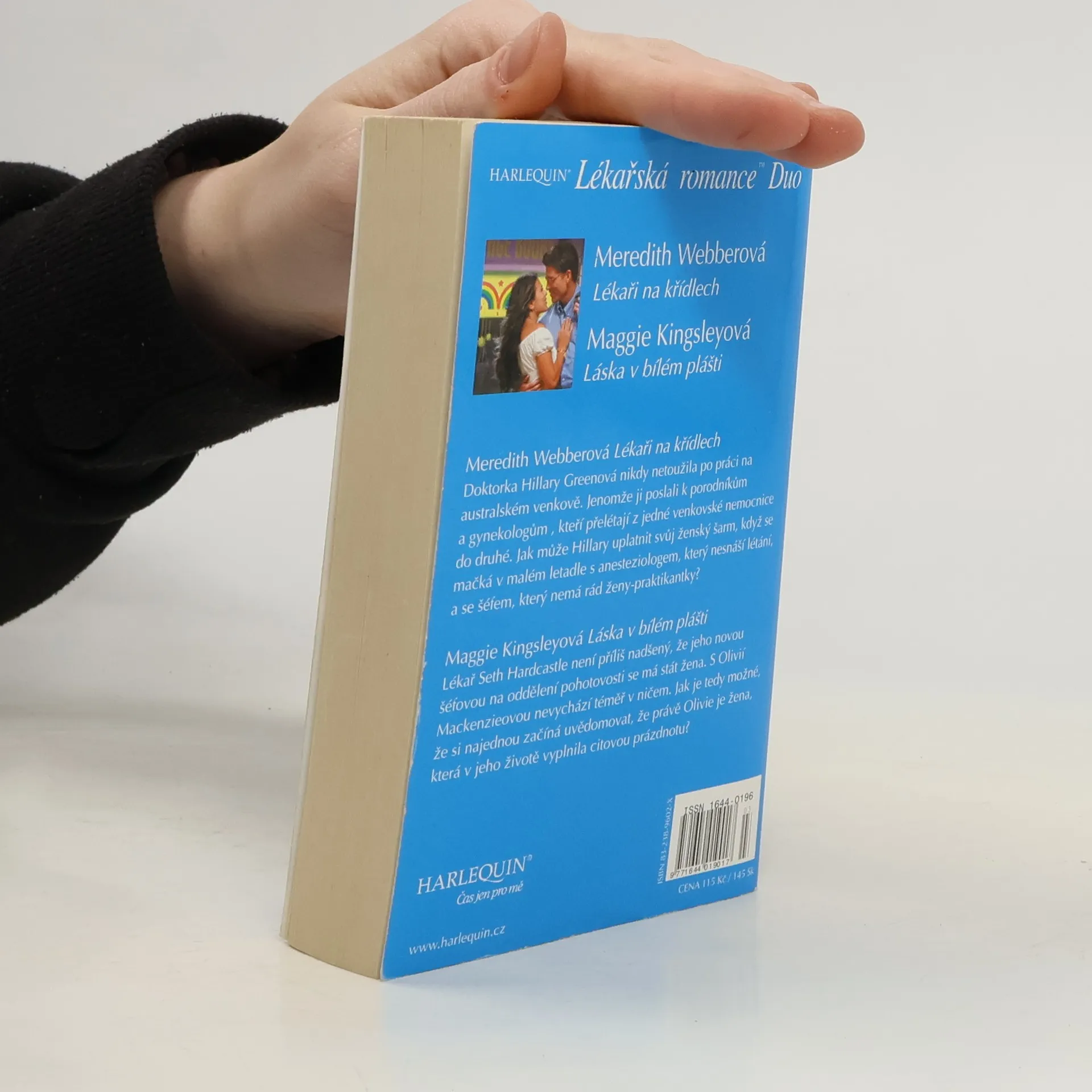 Lékaři na křídlech - Meredith Webber Doktorka Hillary Greenová nikdy netoužila po práci na australském venkově. Jenomže ji poslali k porodníkům a gynekologům, kteří přelétají z jedné venkovské nemocnice do druhé. Jak může Hillary uplatnit svůj ženský šarm, když se mačká v malém letadle s anesteziologem, který nesnáší létání, a se šéfem, který nemá rád ženy-praktikantky? Láska v bílém plášti - Maggie Kingsley Lékař Seth Hardcastle není příliš nadšený, že jeho novou šéfovou na oddělení pohotovosti se má stát žena. S Olivií Mackenzieovou nevychází téměř v ničem. Jak je tedy možné, že si najednou začíná uvědomovat, že právě Olivie je žena, která v jeho životě vyplnila prázdnotu?