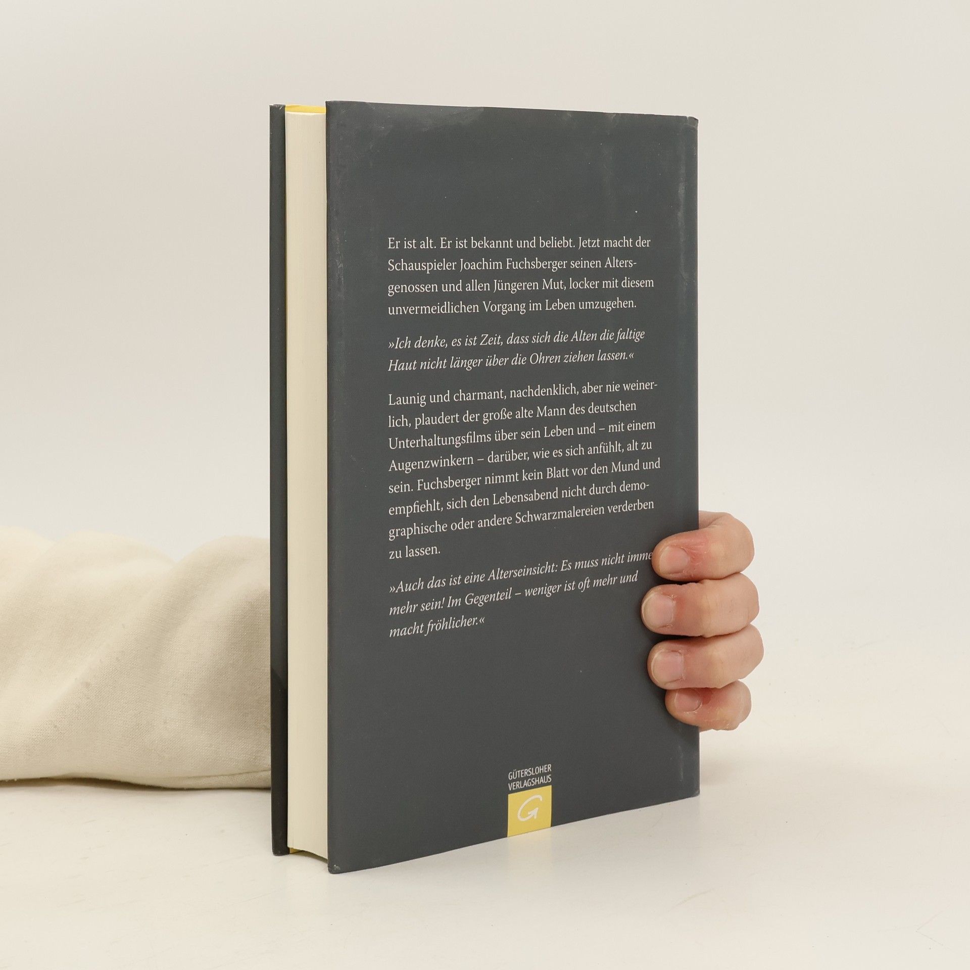 Wie man in Würde und mit einem Augenzwinkern alt werden kann - Nachdenken über das Alter – authentisch und unterhaltsam- Ein lesenwertes, heiter-ironisches Buch von einem Sympathieträger erster GüteEr ist alt. Er ist bekannt und beliebt. Jetzt macht der Schauspieler Joachim Fuchsberger seinen Altersgenossen und allen Jüngeren, die ja auch irgendwann mal alt werden, Mut, locker mit diesem unvermeidlichen Vorgang im Leben umzugehen: »Ich denke, es ist Zeit, dass sich die Alten die faltige Haut nicht länger über die Ohren ziehen lassen. Hören wir auf, im stillen Kämmerlein und vor der Glotze auf die Schwätzer aus den Amtsstuben zu hören, lassen wir uns keine Angst mehr einjagen von den Neunmalklugen, wo immer sie sitzen.«Launig und charmant, nachdenklich, aber nie weinerlich, plaudert der große alte Mann des deutschen Unterhaltungsfilms über die Blüte seines Lebens und darüber, wie es sich anfühlt, wenn sie langsam dahinwelkt. Fuchsberger nimmt kein Blatt vor den Mund und empfiehlt, sich den Lebensabend nicht durch demographische Schwarzmalerei verderben zu lassen.
