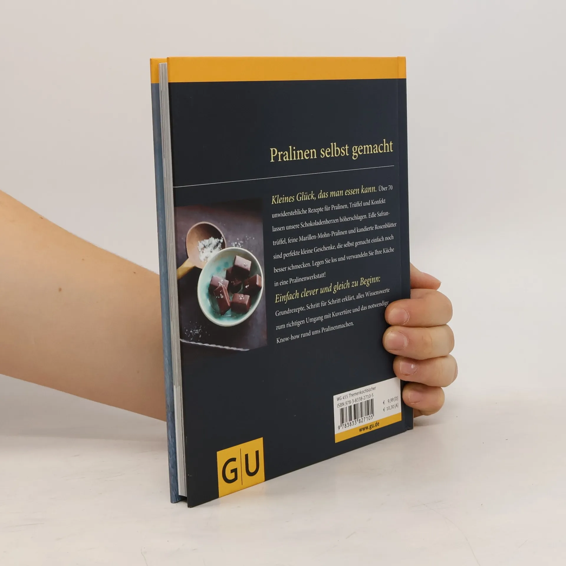 Außen glänzend mit dem besonderen Knack, im Mund zart schmelzend, das cremig-aromatische Innenleben mit einmaligem Überraschungseffekt Trüffel und Pralinen lassen unsere Schokoladenherzen höher schlagen. Mit 70 einfachen Rezepten für kleine selbst gemachte Köstlichkeiten tauchen wir ein in eine Genusswelt, die alle Sinne betört: Weiße Safrantrüffel, Cranberry-Zimt-Küsschen, Champagner-Herzen, Erdbeer-Passionsfrucht-Würfel und daneben allbekannte Klassiker mit Frucht und mit Nuss bis hin zu traumhaftem Konfekt. Ausführliche Grundrezepte und viele Schritt-für-Schritt-Abbildungen legen uns das ganze Know-how rund um den richtigen Umgang mit Kuvertüre, Kakao, Zucker und Co. nahe, zeigen z. B. ganz genau, wie Temperieren geht und wie man schöne Verzierungen zaubert. Und eine bebilderte Pannenhilfe zeigt, warum unsere Pralinen Füßchen kriegen, hilft Fehler zu vermeiden und macht die Herstellung der kleinen Naschereien in der Pralinenwerkstatt zuhause ganz einfach.
