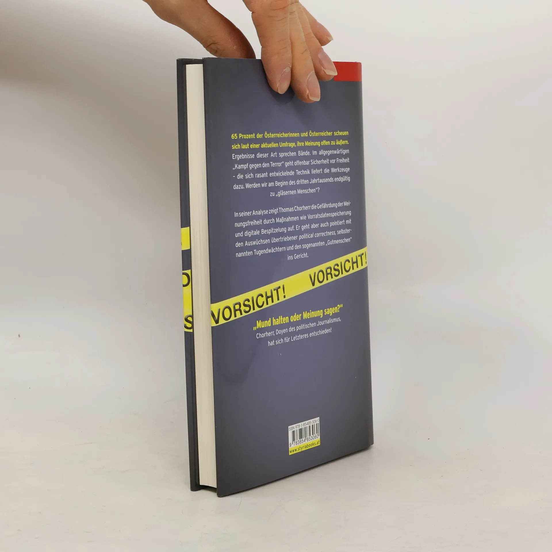Eine messerscharfe Analyse über die Gefahr eines ausufernden Überwachungsstaates und was das für jeden von uns bedeuten kann. 65% der Österreicherinnen und Österreicher haben bei einer Umfrage angegeben, dass sie nicht ohne Scheu über politische, kulturelle oder geschichtliche Dinge reden. Sie fürchten Nachteile, wenn sie ihre Meinung frei äußern. Ergebnisse dieser Art sprechen Bände. Zwar schützen Staatsgrundgesetz und Menschenrechtskonvention vor der Willkür der Behörden, aber im „Kampf gegen den Terrorismus“ geht offenbar Sicherheit vor Freiheit. Ist der nächste Schritt die Einführung einer „Gedankenpolizei“, wie sie George Orwell in seinem Zukunftsroman „1984“ vorausgesehen hat? Thomas Chorherr analysiert die Gefährdung der Meinungsfreiheit durch staatliche Maßnahmen wie die Vorratsdatenspeicherung und digitale Bespitzelung. Werden wir am Beginn des dritten Jahrtausends endgültig zu „gläsernen Menschen“?