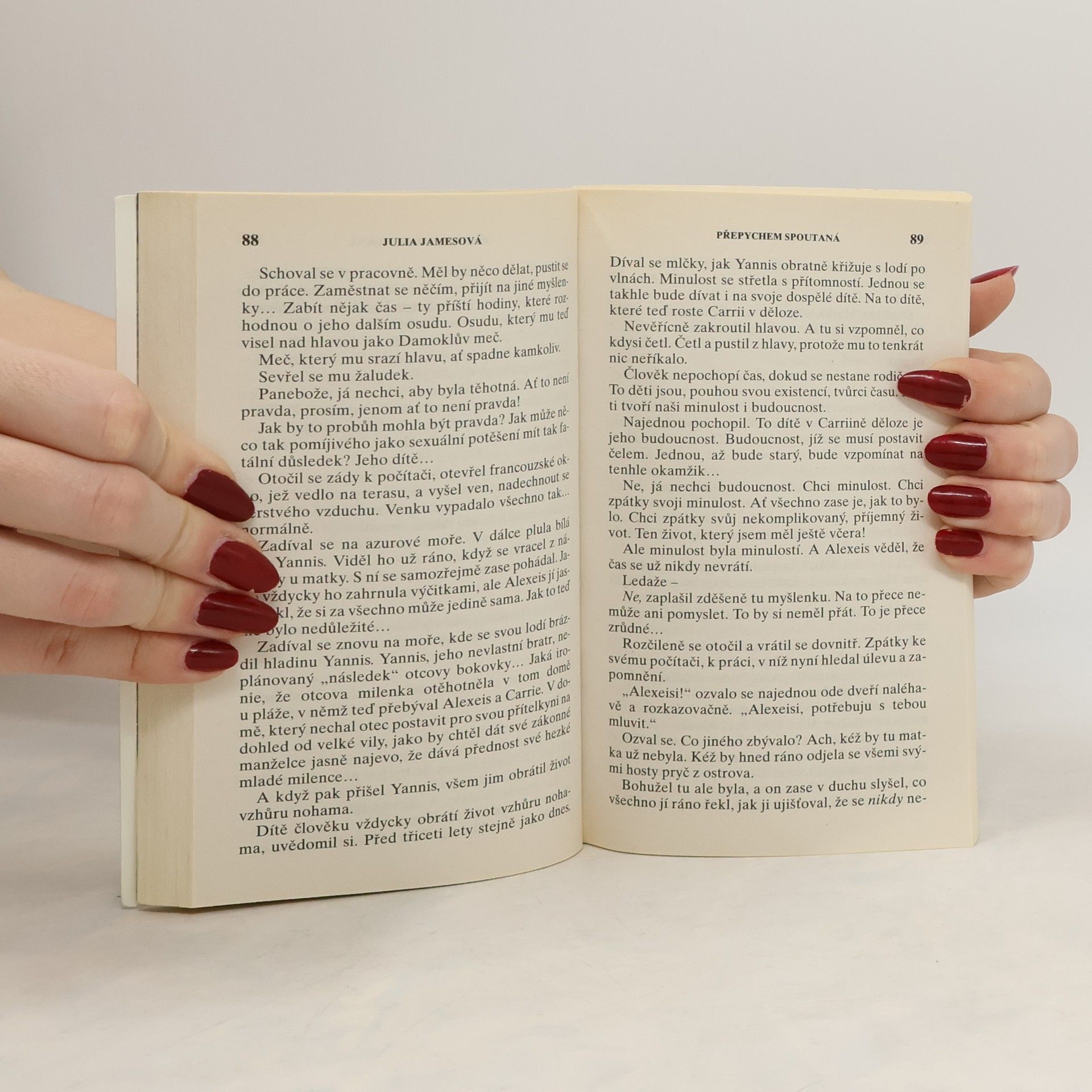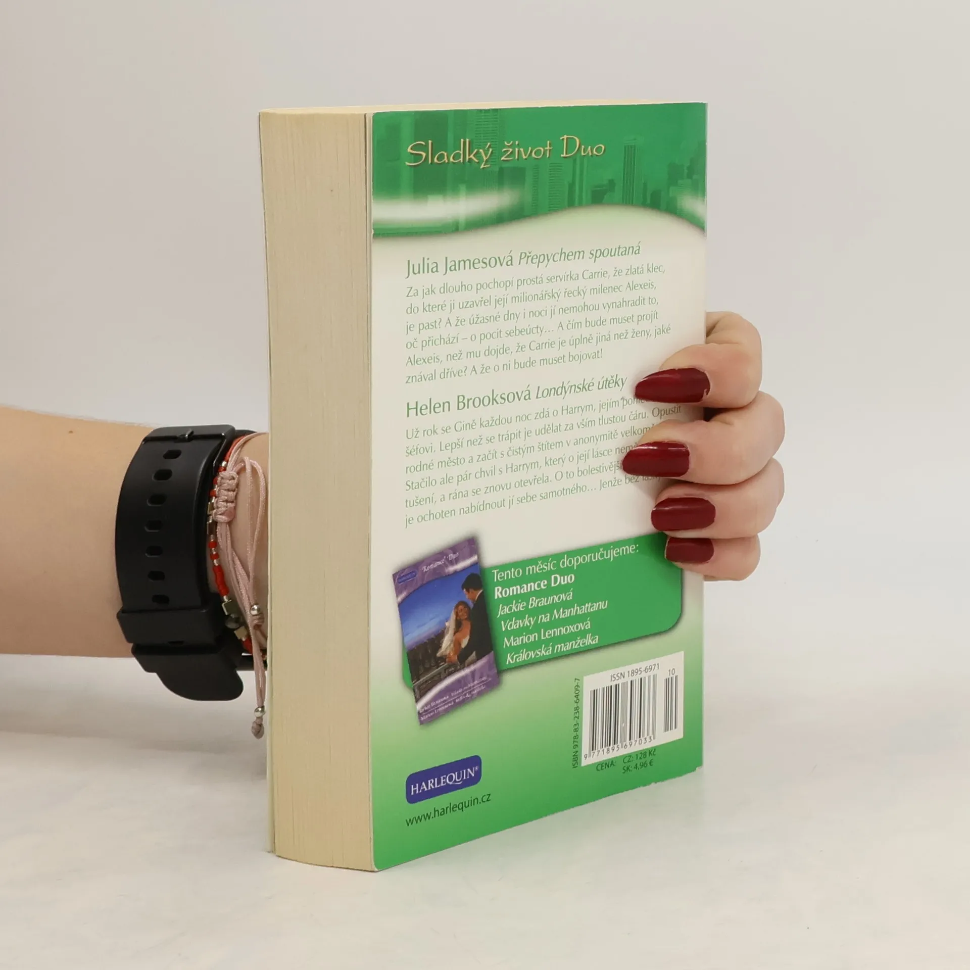 Přepychem spoutaná Za jak dlouho pochopí prostá servírka Carrie, že zlatá klec, do které ji uzavřel její milionářský řecký milenec Alexeis, je past? Nablýskaná a navoněná, ale pořád past! A že úžasné dny i noci, jež s charismatickým podnikatelem tráví, jí nemohou vynahradit to, oč přichází - o pocit sebeúcty… Londýnské útěky Už rok se Gině každou noc zdá o Harrym, jejím pohledném šéfovi. A stále jasněji chápe, že tato láska zůstane navždy neopětovanou… Lepší než se trápit je udělat za vším tlustou čáru. Opustit rodné město a začít s čistým štítem v anonymitě velkoměsta. Stačilo ale pár chvil s Harrym, který o její lásce neměl ani tušení, a rána se znovu otevřela. O to bolestivější, že Harry je ochoten nabídnout jí to, po čem nejvíce touží. Sebe samotného… Jenže bez lásky!