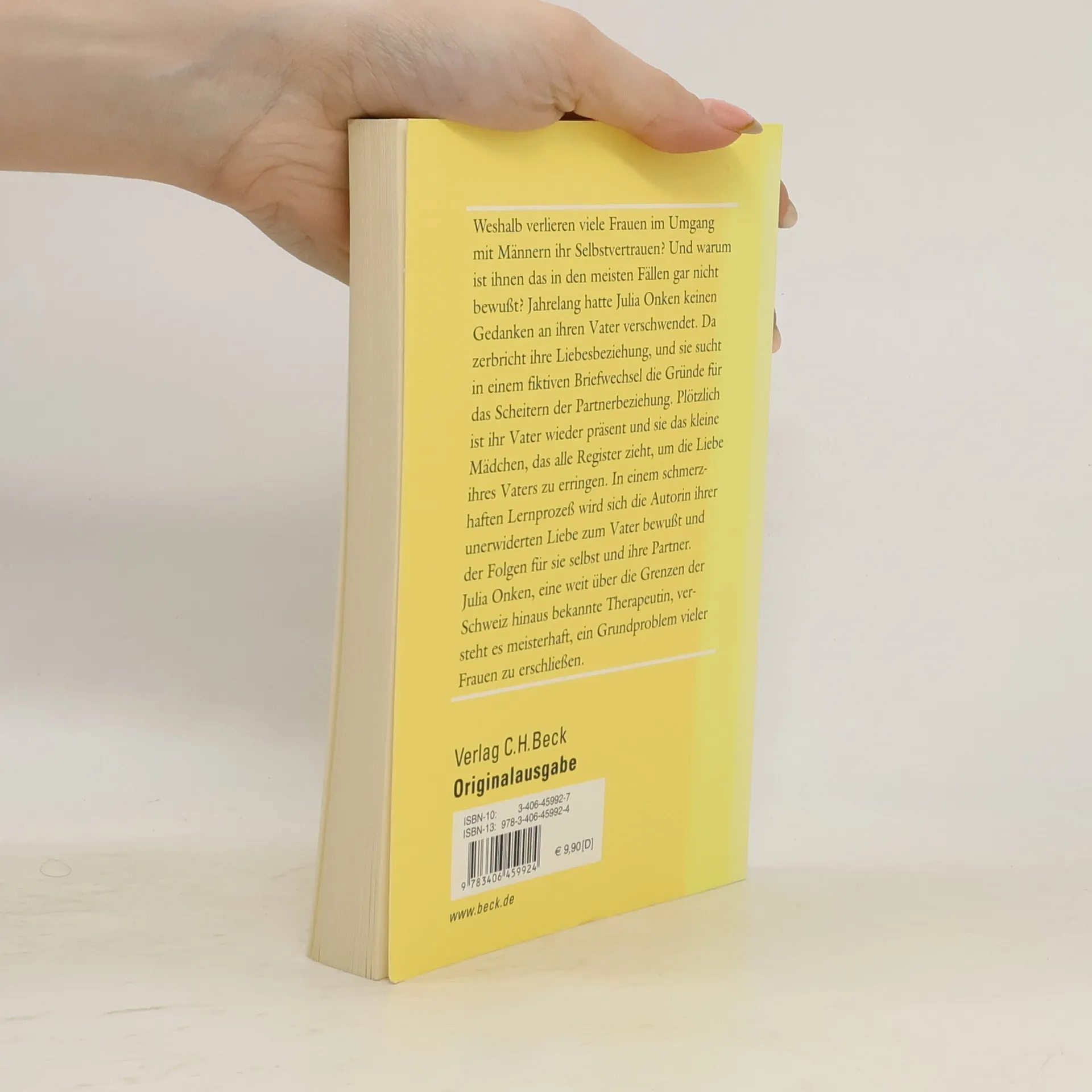 Weshalb verlieren viele Frauen im Umgang mit Männern ihr Selbstvertrauen? Und warum ist ihnen das in den meisten Fällen gar nicht bewußt? Jahrelang hatte Julia Onken keinen Gedanken an ihren Vater verschwendet. Da zerbricht ihre Liebesbeziehung, und sie sucht in einem fiktiven Briefwechsel die Gründe für das Scheitern der Partnerbeziehung. Plötzlich ist ihr Vater wieder präsent und sie das kleine Mädchen, das alle Register zieht, um die Liebe ihres Vaters zu erringen. In einem schmerzhaften Lernprozeß wird sich die Autorin ihrer unerwiderten Liebe zum Vater bewußt und der Folgen für sie selbst und ihre Partner. Julia Onken, eine weit über die Grenzen der Schweiz hinaus bekannte Therapeutin, versteht es meisterhaft, ein Grundproblem vieler Frauen zu erschließen.