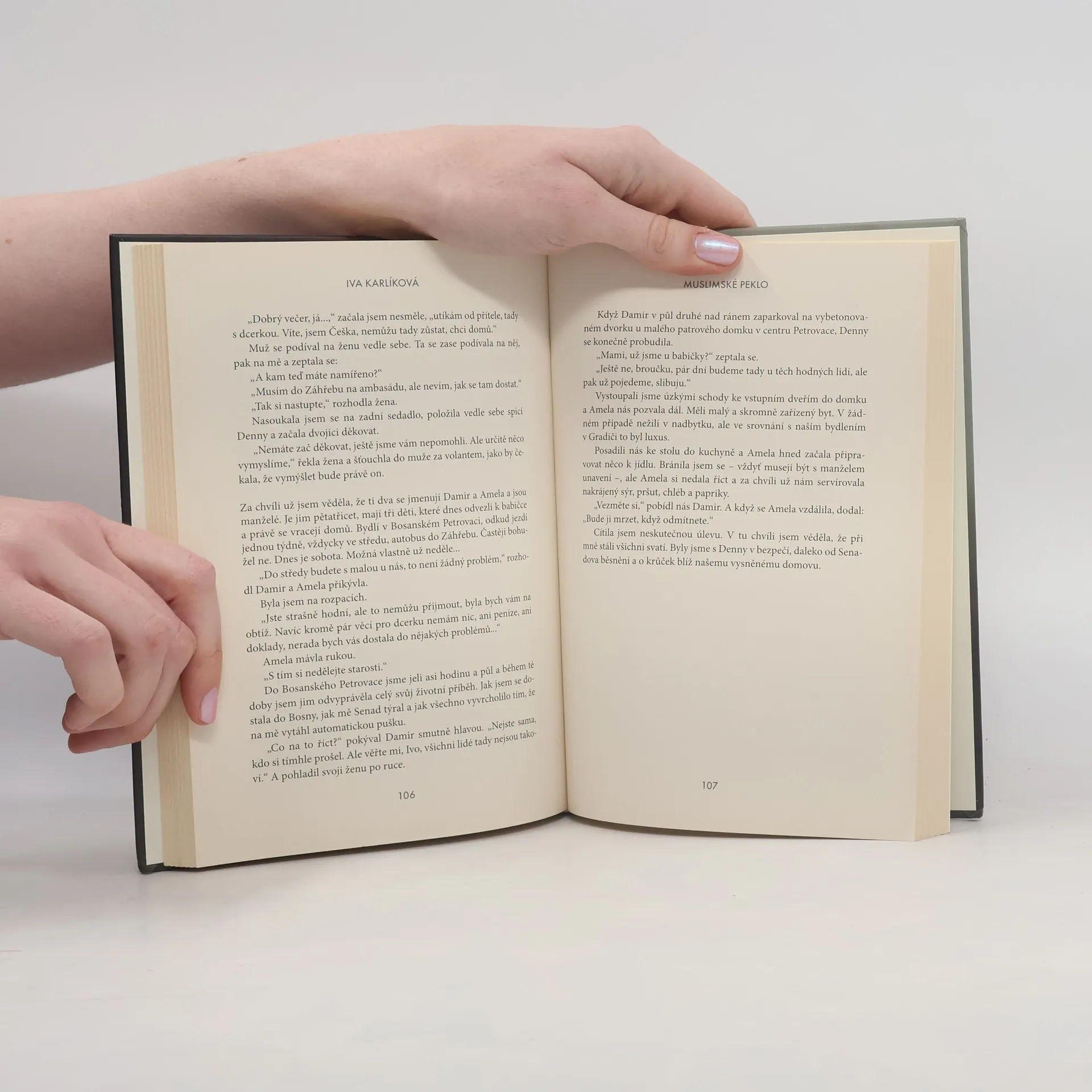 Kniha Ivy Karlíkové je ryze autobiografická. Přestože autorka nefabuluje, její vyprávění o několikaletém vztahu s bosenským muslimem je strhující a plné zvratů. V lecčems se podobá příběhu světoznámé knihy „Bez dcerky neodejdu“ – s tím rozdílem, že dějištěm Muslimského pekla je Evropa, kterou považujeme za civilizovanou a kulturní. Iva Karlíková svoji knihu uvádí slovy: „Seznámili jsme se v Německu. Já pocházela z Čech, Senad z Bosny. Byla to láska na první pohled a já si myslela, že hezčího, milejšího a pozornějšího chlapa už nikdy nenajdu. Věděla jsem, že je muslim, ale nepovažovala jsem to za překážku. Jeho ani můj život se žádným náboženským pravidlům nepřizpůsoboval. Všechno se změnilo, když se nám narodila dcera. Ze Senada se stal tyran. Až příliš pozdě jsem pochopila, že tam u nich, v Bosně mezi muslimy, je docela běžné zacházet se ženou jako s kusem hadru a odvolávat se na Alláhovu vůli. Mockrát jsem od něj chtěla odejít, ale strach, že si nás s dcerkou najde a ublíží nám, mi to nedovolil. Senad a jeho rodiče mě nakonec donutili přestěhovat se do Bosny. Ze dne na den jsem se ocitla ve světě, který byl na hony vzdálený všemu, co jsem znala. To, co jsem tam dnes a denně zažívala, se podobalo peklu. Jediné, co mě drželo při životě, byla malá dcera a mlhavá naděje, že se mi jednou podaří útéct...“