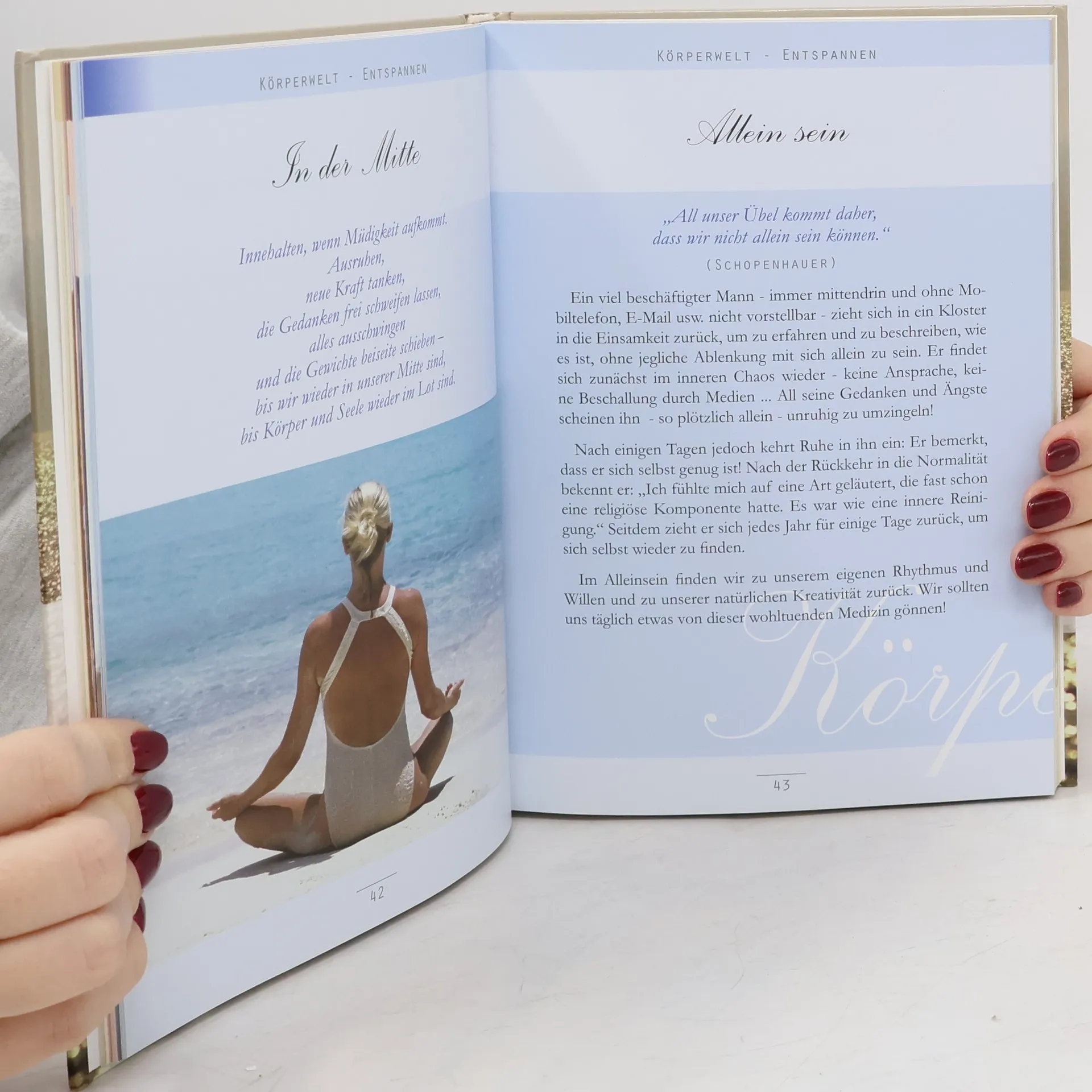 Lesen ist eine Reise, die uns bereichert, erfüllt und inspiriert. Oft strengen wir uns an, um Sätze mehrmals zu lesen und sie aus verschiedenen Perspektiven zu betrachten, ähnlich wie eine weite Landschaft. Dabei entdecken wir immer wieder Neues: das Wohlgefühl, den eigenen Körper zu bewegen und zu pflegen; die Erleuchtung, die kreative Höhenflüge des Geistes mit sich bringen; die Freude, Gefühle in ihrer Fülle auszukosten; das wohltuende Gefühl der Geborgenheit in einer Gemeinschaft und den achtsamen Umgang mit uns selbst und anderen; die herrlichen Schauspiele, die uns die Natur und das Theater bieten. Wir erkennen, wie reich wir sind und finden oft Aspekte in unserem Leben, die wir verändern möchten. Der entscheidende Vorteil, heute mit einer kleinen Verbesserung zu beginnen, liegt darin, dass der Anfang die halbe Miete ist. Wenn wir unsere Aufmerksamkeit auf das Hier und Jetzt richten, entdecken wir das Wesentliche und gewinnen an Zeit. Egal wohin uns der Weg führt, lasst uns ihn mit ganzem Herzen gehen!