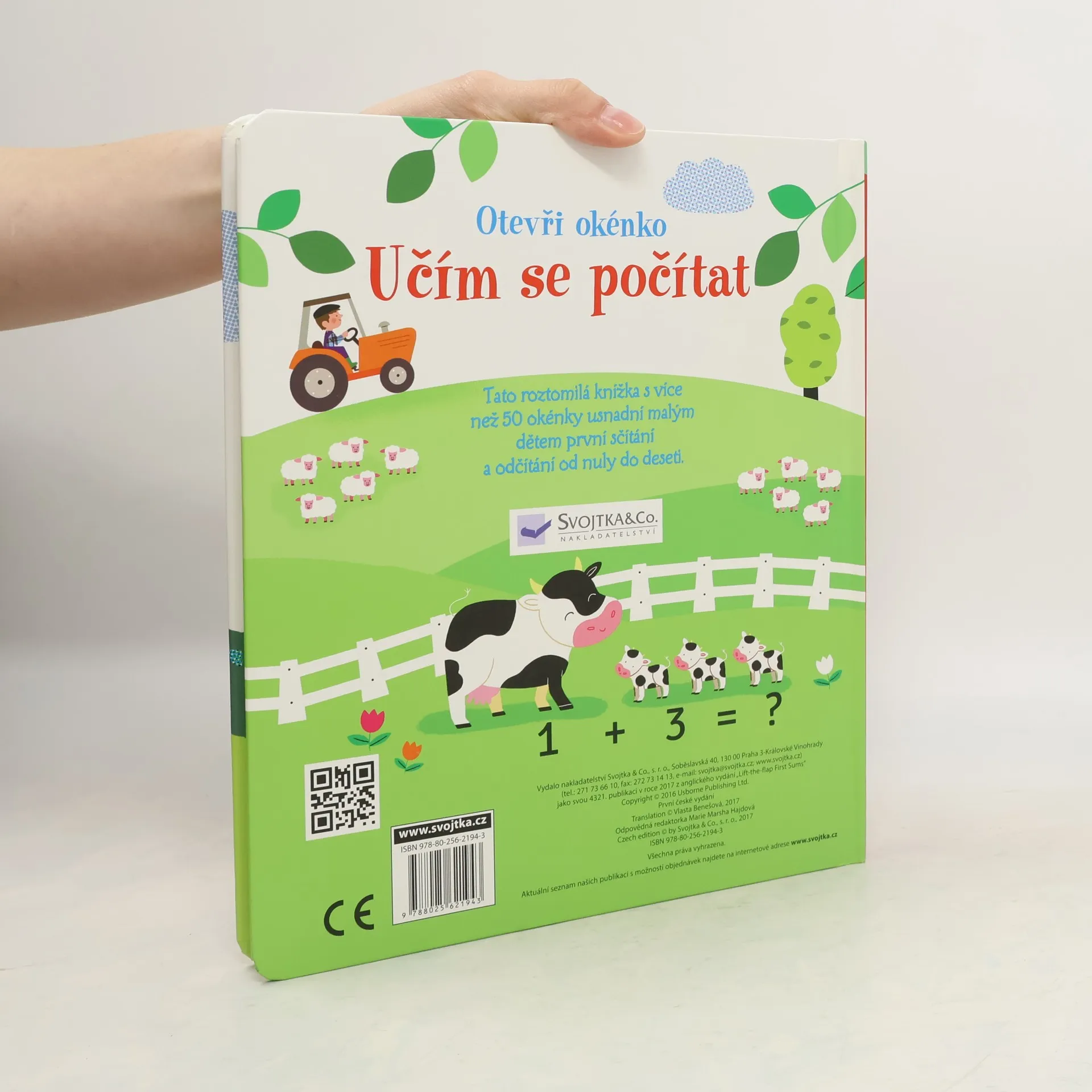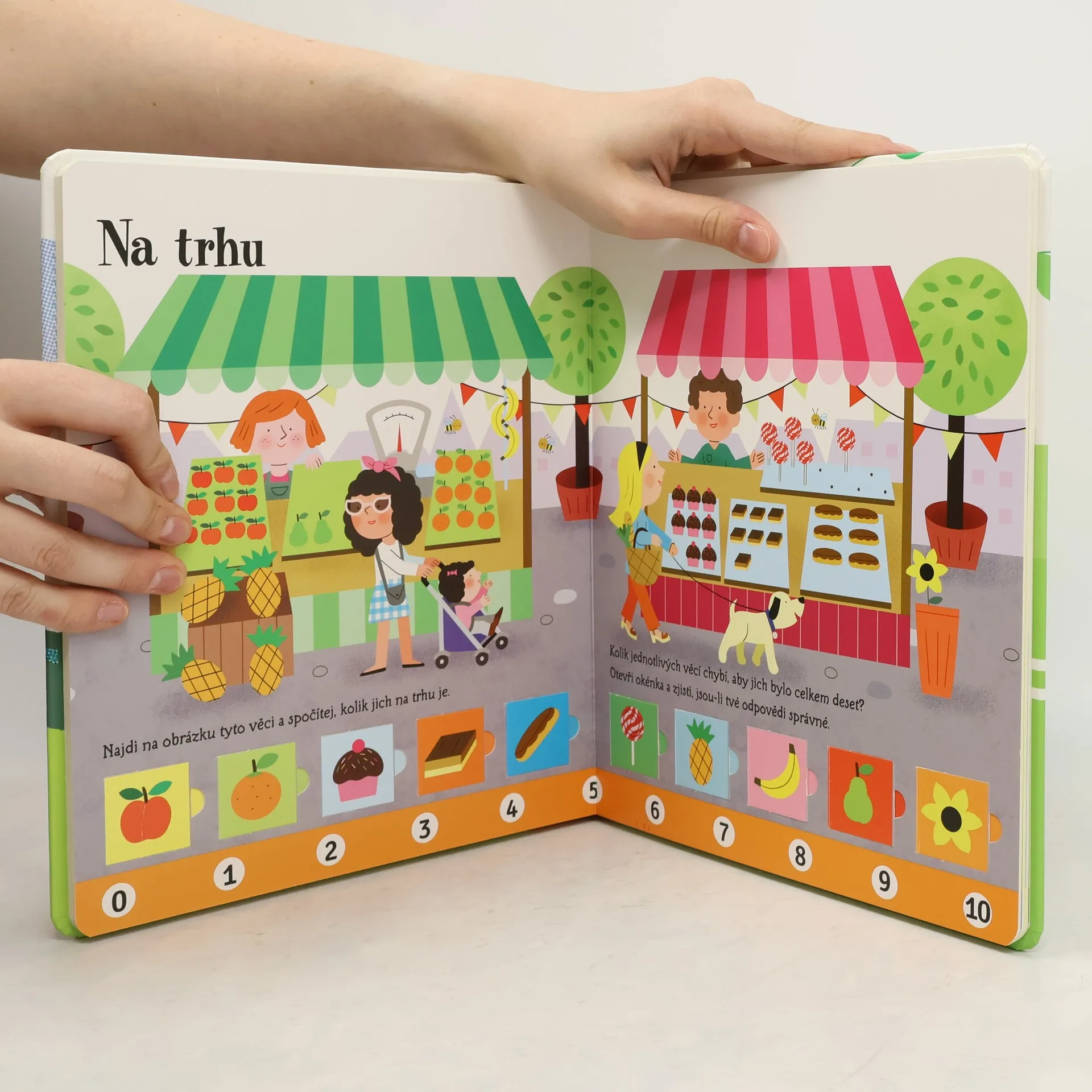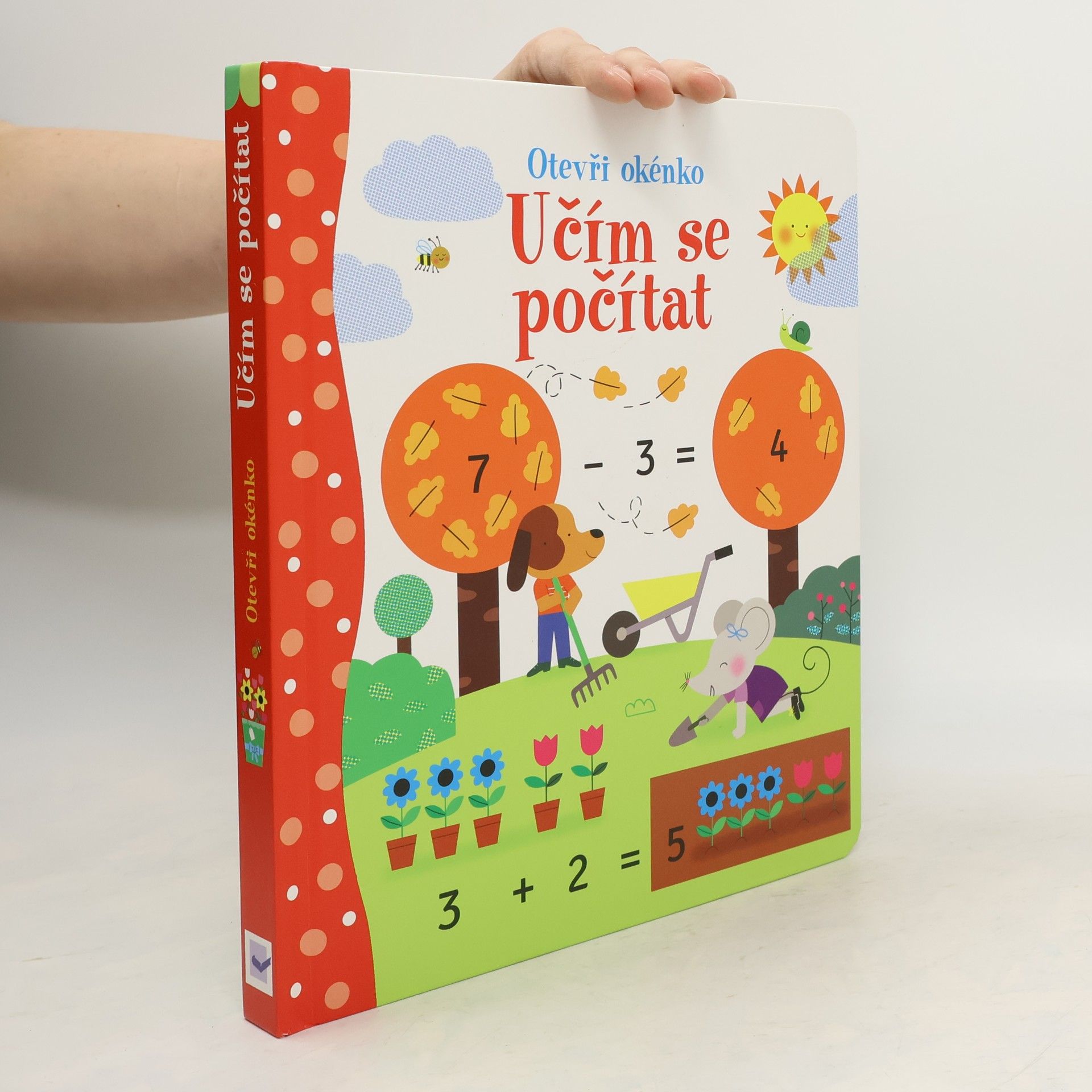 Knížka s odklápěcími okénky seznamuje děti nejen s čísly od nuly do deseti, ale postupně se s ní naučí také jednoduché sčítání a odčítání. Budou počítat pejsky, květiny a budou muset vypočítat, kolik koblih pejsek snědl a kolik brouků odlétlo. Své výsledky si děti mohou zkontrolovat pod odklápěcími okénky. Velké a barevné ilustrace i zábavné příklady děti zaujmou a usnadní učení. České vydání publikace nakladatelství Usborne.