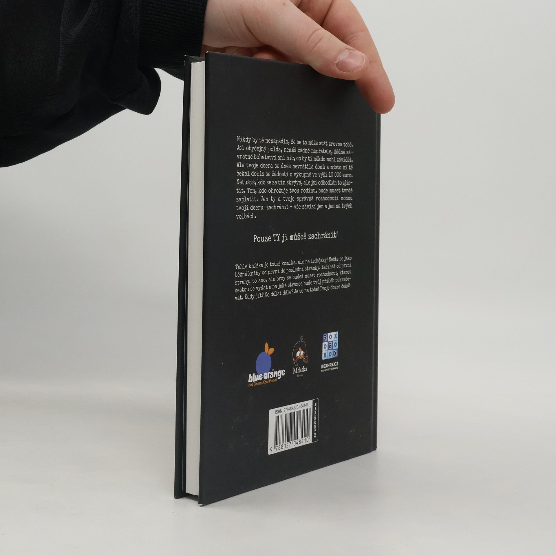"Kniha Unesená je komiksový gamebook, tedy komiks kombinovaný se hrou. Při čtení/hraní gamebooku prožijete s hlavním hrdinou v knize příběh, jehož průběh zavisí na vašich rozhodnutích. Kniha obsahuje list postavy, kam během čtení zaznamenáte čas, zranění, získané předměty a nakonec i vítězné body. Stručně lze čtení/hru komiksového gamebooku popsat tak, že následujete jednotlivé obrázky v knize. Obrázky obsahují stopy, hádanky a pasti a vy se musíte rozhodnout kam a jak budete pokračovat. Při sledování obrázků sbíráte stopy, luštíte hádanky a rozhodujete se, jak dál pokračovat. Jako v každé hře můžete také prohrát a někdy velmi rychle a krutě. V gamebooku Unesená se stáváte otcem dcery, kterou unesli. Otázka, proč by na vaše blízké měl někdo podniknout takový útok je jen jednou z mnoha, která vás pronásleduje od okamžiku, kdy jste se dozvěděli o únosu dcery. Blížíte ke dveřím honosné vily postavené uprostřed hlubokého lesa, v ruce křečovitě svíráte zbraň a vaše duše je naplněna strachem. Máte předtuchu, že události dnešního večera neskončí dobře. A vaše intuice vás bohužel nezradí – i když to, co na vás čeká za dveřmi té proklaté budovy, si jen stěží dokážete představit. Vaše noční můra začíná ….. budete mít dost sil a odvahy zachránit vaši dceru ze spárů zla?"