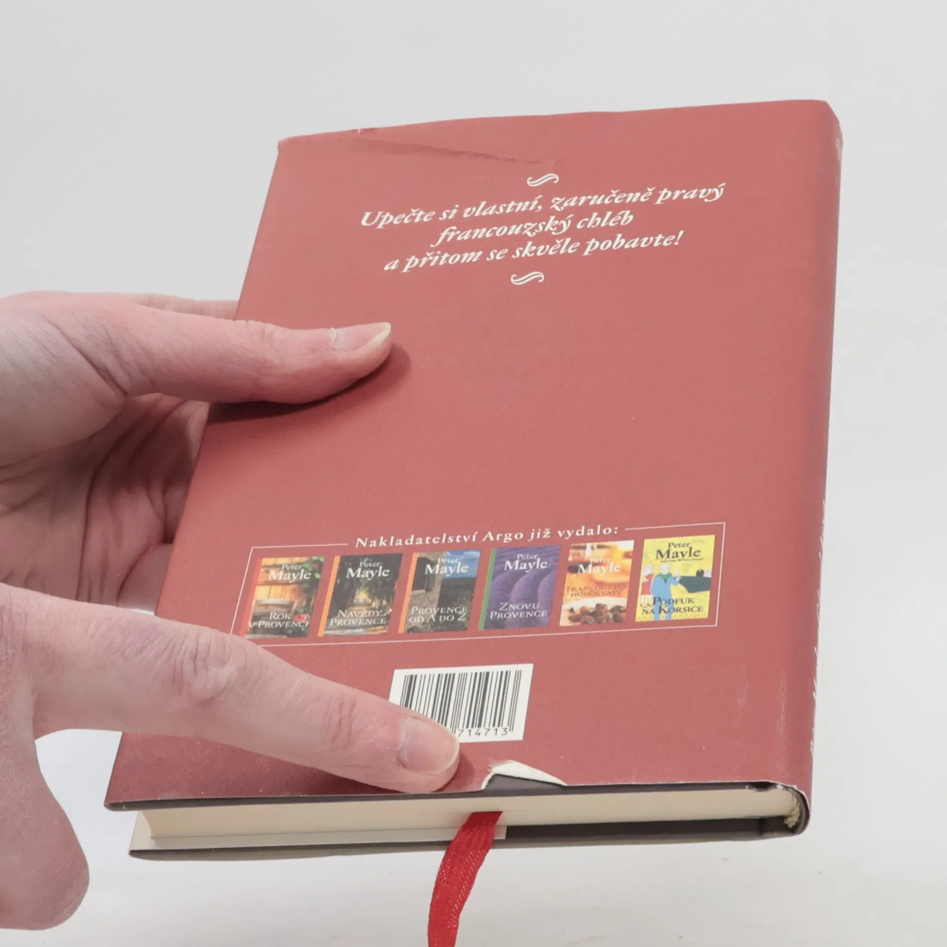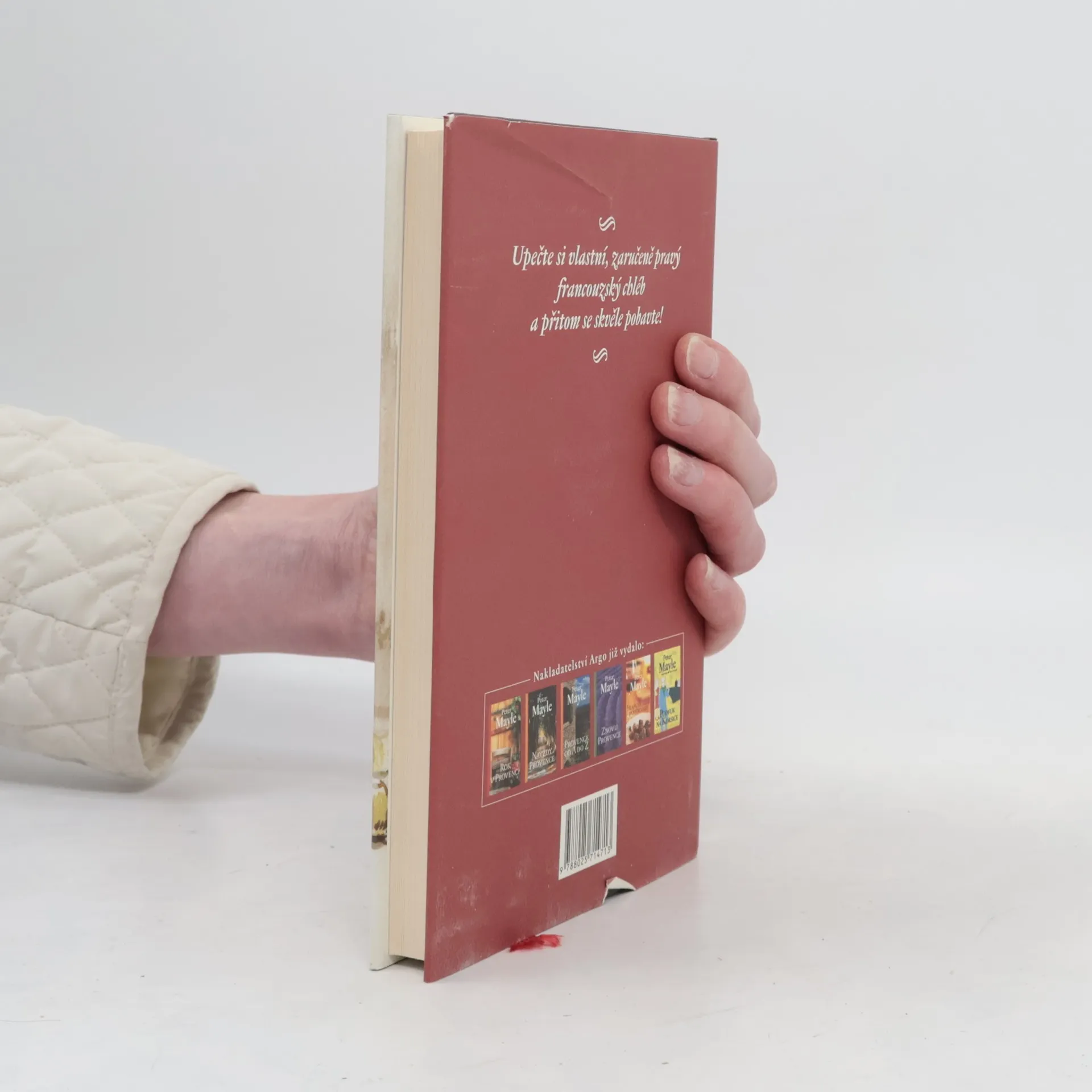 V tomto útlém svazku Peter Mayle spojil síly s Gérardem Auzetem, majitelem proslulé pekárny „Chez Auzet“ v provensálském Cavaillonu, aby nám prozradil vše o pečení chleba po francouzsku. Od přípravy a mixování těsta až po vlastní pečení, od tradičních baget a bulek až po kořeněné, olivové či vinné chleby, tento britský milovník Francie a její kuchyně nás seznamuje s jednoduchými a podrobně vysvětlenými recepty, postupy a tipy pro domácí pečení, jež doplňuje lidovými rčeními, humornými historkami a stručnou historií čtyř generací této rodinné pekárny, kde „pečení a konzumaci chleba povýšili na úroveň náboženského obřadu".