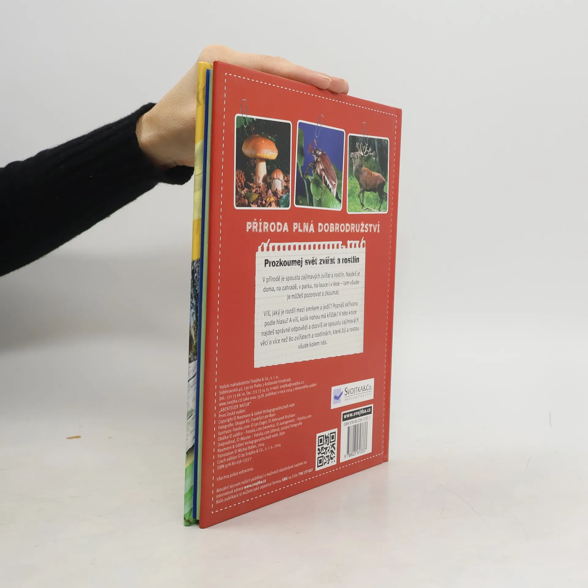 V přírodě je spousta zajímavých zvířat a rostlin. Najdeš je doma, na zahradě, v parku, na louce i v lese – tam všude je můžeš pozorovat a zkoumat. Víš, jaký je rozdíl mezi smrkem a jedlí? Poznáš skřivana podle hlasu? A víš, kolik nohou má křižák? V této knize najdeš kromě správných odpovědí mnoho dalších zajímavých informací o více než 80 zvířatech a rostlinách, které žijí a rostou všude kolem nás. Příroda je plná dobrodružství – prozkoumej ji!