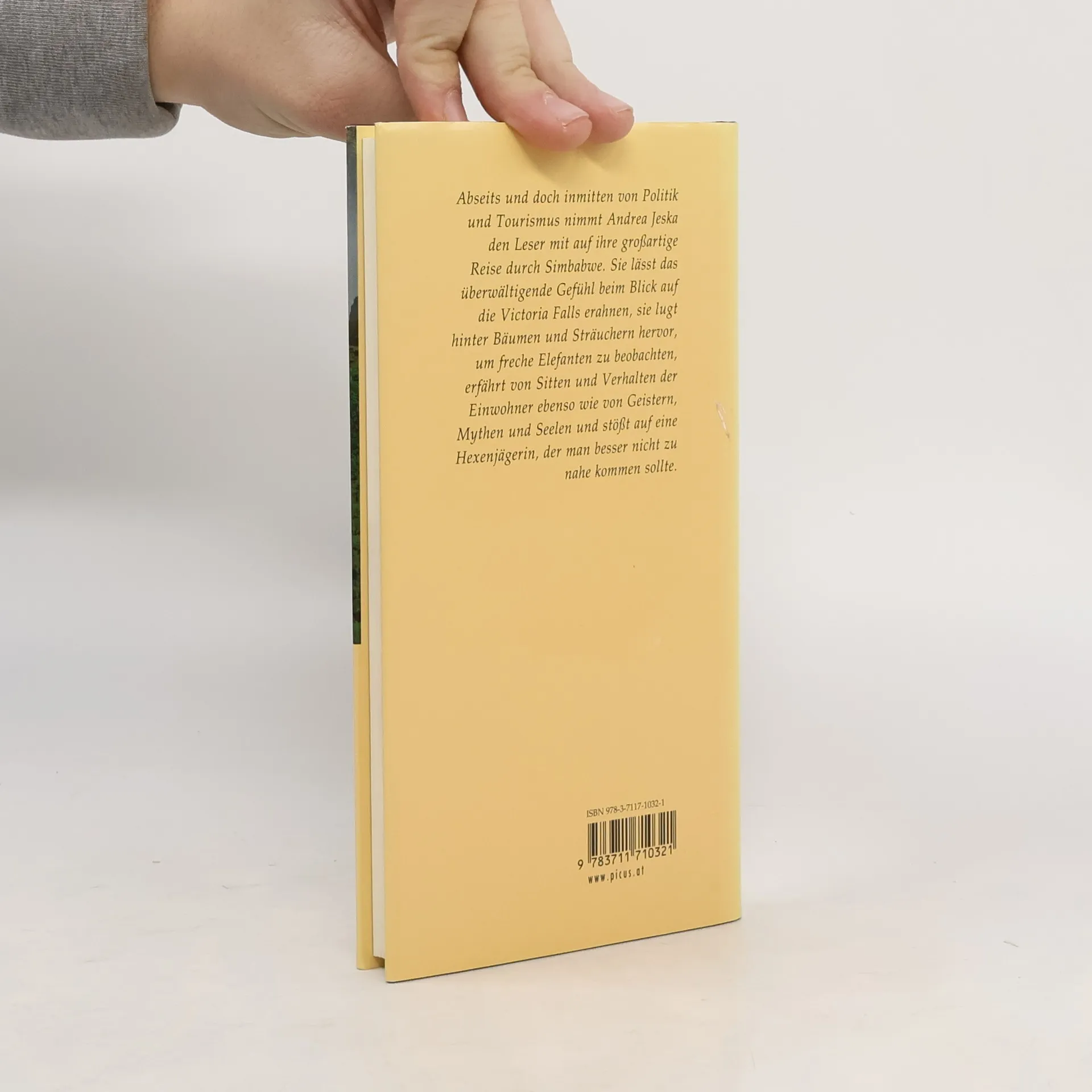 In den Hügeln von Matopos wohnen Stimmen in Felsen, im Kariba-See hat der Schlangengott Nyaminyami Sehnsucht nach seiner Frau und im Park von Hwange baden Elefanten im Swimmingpool. Über sprühenden Wassern spannen sich Regenbogen, Engel werden im Flug nass und verwegene Männer fürchten sich nicht vor Löwen. Wo die Ahnen und die Geister hausen, wo Götter verrückt spielen und Menschen gegen alle Widrigkeiten einen vitalen Optimismus bewahren, wo die Natur grandios und die Umstände manchmal haarsträubend sind, da ist Simbabwe. Das Land der Steine, des Sambesis und der größten Wasserfälle der Welt. Andrea Jeska beschreibt die Morgendämmerung in dem ein Jahrzehnt lang in Chaos und Niedergang versunkenen Land. Ihr auferstehendes Simbabwe ist voller Kraft und Schönheit, Hoffnung und Witz. Sie berichtet von einer der größten Elefantenherden der Welt, den letzten Relikten des Empire in Bulawayo und Victoria Falls, vom Kampf der Tonga um neue Identität und von den Geheimnissen des Kariba-Sees. Sie war mit Elefantenflüsterern, Echsenbeschwörern und Löwenbezwingern unterwegs und gewöhnte sich bis zum Schluss nicht an ein simbabwisches Grundnahrungsmittel: klebrigen Maisbrei.