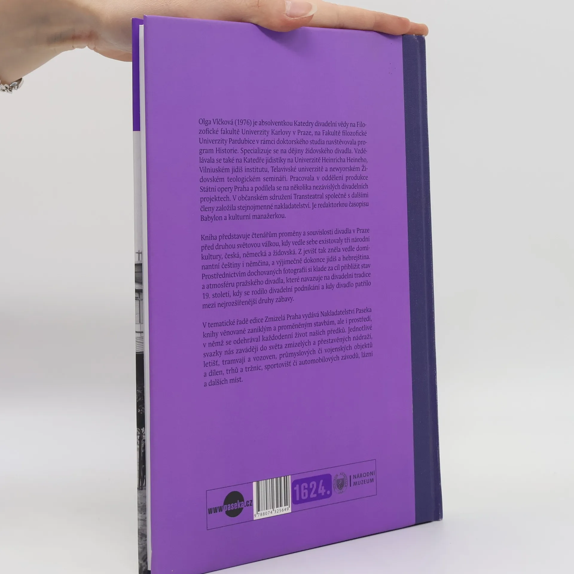 Kniha představuje čtenářům proměny a souvislosti divadla v Praze před druhou světovou válkou, kdy vedle sebe existovaly tři národní kultury, česká, německá a židovská. Z jevišť tak zněla vedle dominantní češtiny i němčina, a výjimečně dokonce jidiš a hebrejština. Prostřednictvím dochovaných fotografií si klade za cíl přiblížit stav a atmosféru pražského divadla, které navazuje na divadelní tradice 19. století, kdy se rodilo divadelní podnikání a kdy divadlo patřilo mezi nejrozšířenější druhy zábavy.