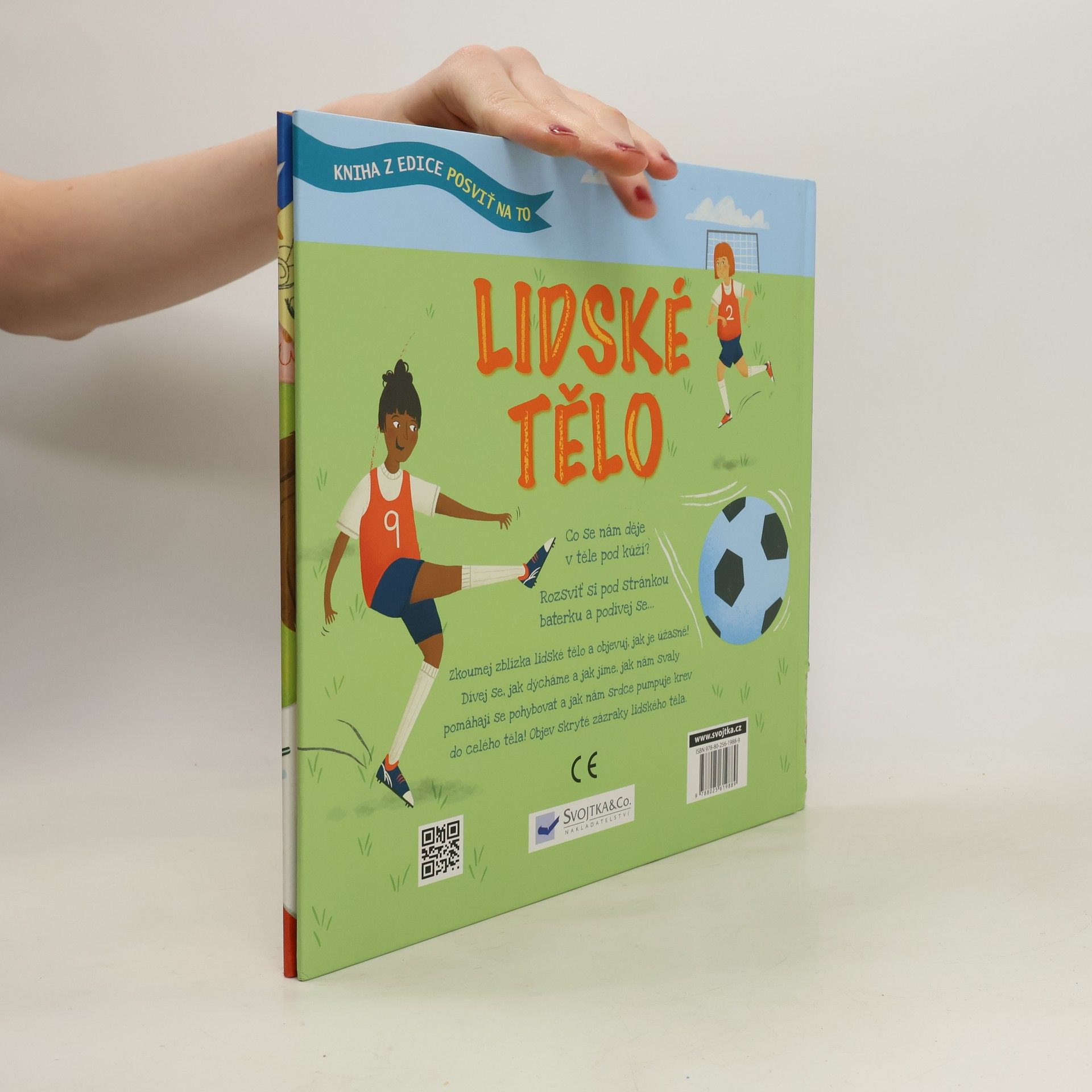 Přidrž si stránky knihy proti světlu nebo je prosviť zespodu baterkou… nahlédneš přímo dovnitř lidského těla! Posviť si na to, jak to v lidském těle funguje. Víš, co se lidem odehrává v těle pod kůží? Představ si, že by stačilo posvítit si na to baterkou a vše uvidíš jako na dlani! Tak přesně tohle je teď možné díky této fantasticky zábavné knížce, která odhaluje skrytá tajemství lidského těla. Zkoumej zblízka lidské tělo a objevuj, jak je úžasné! Podívej se důkladně na to, jak dýcháme a jak jíme, jak nám svaly pomáhají se pohybovat a jak nám srdce pumpuje krev do celého těla! Objev skryté zázraky lidského těla. Připrav si svítilnu a vydej se objevovat skrytý svět plný velkých překvapení. Ideální čtení pod peřinu!