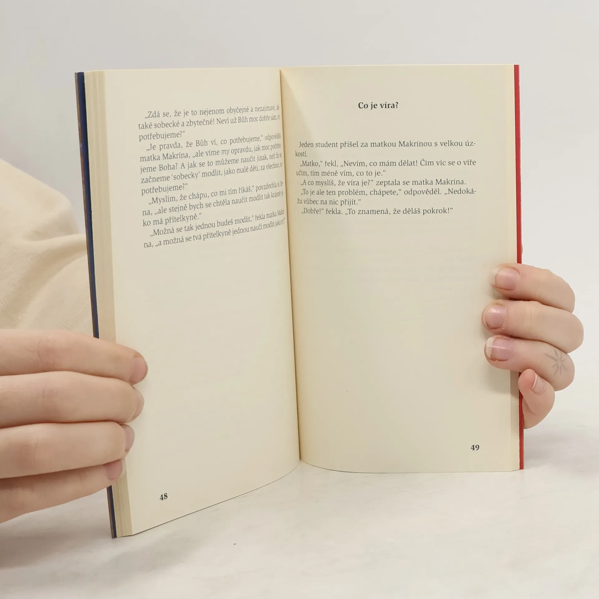 Hlavní postavou krátkých vtipných příběhů je matka Makrína, fiktivní "pouštní matka". Makrína však nežije v Egyptské poušti, nýbrž v malém bytě uprostřed města. Sousedé a známí k ní občas přicházejí a žádají o duchovní radu nebo objasnění nějakého problému. A matka Makrína jim naslouchá, modlí se a předává to, co sama "ukradla" u svatých, vždyť oni sami zase "kradli" u Boha, z nevyčerpatelné pokladnice Boží moudrosti.