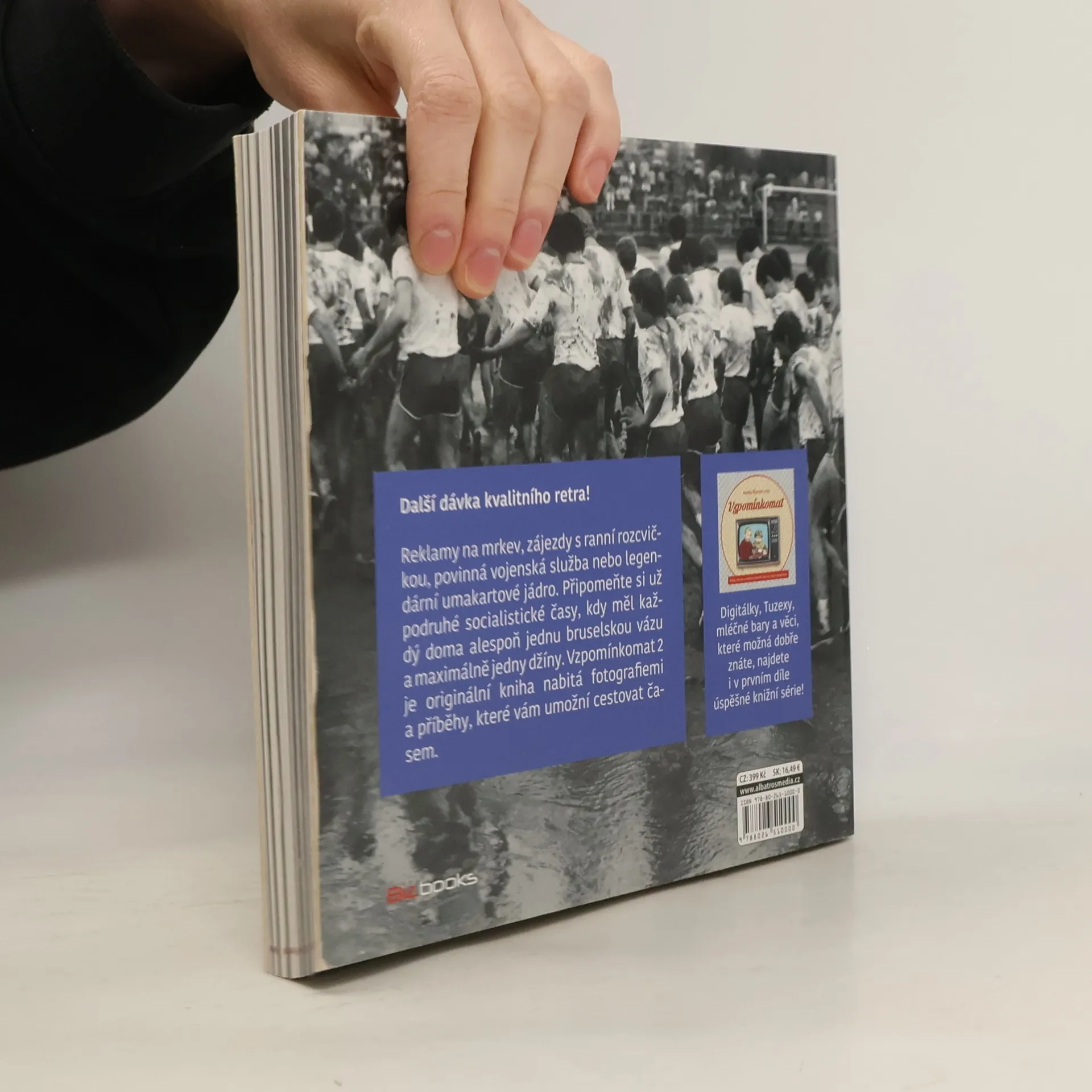 Skutečné příběhy, které jste možná prožili i vy. Reklamy na mrkev, zájezdy s ranní rozcvičkou, povinná vojenská služba nebo legendární umakartové jádro. Připomeňte si už podruhé socialistické časy, kdy měl každý doma alespoň jednu bruselskou vázu a maximálně jedny džíny. Vzpomínkomat 2 je originální kniha nabitá fotografiemi a příběhy, které vám umožní cestovat časem.